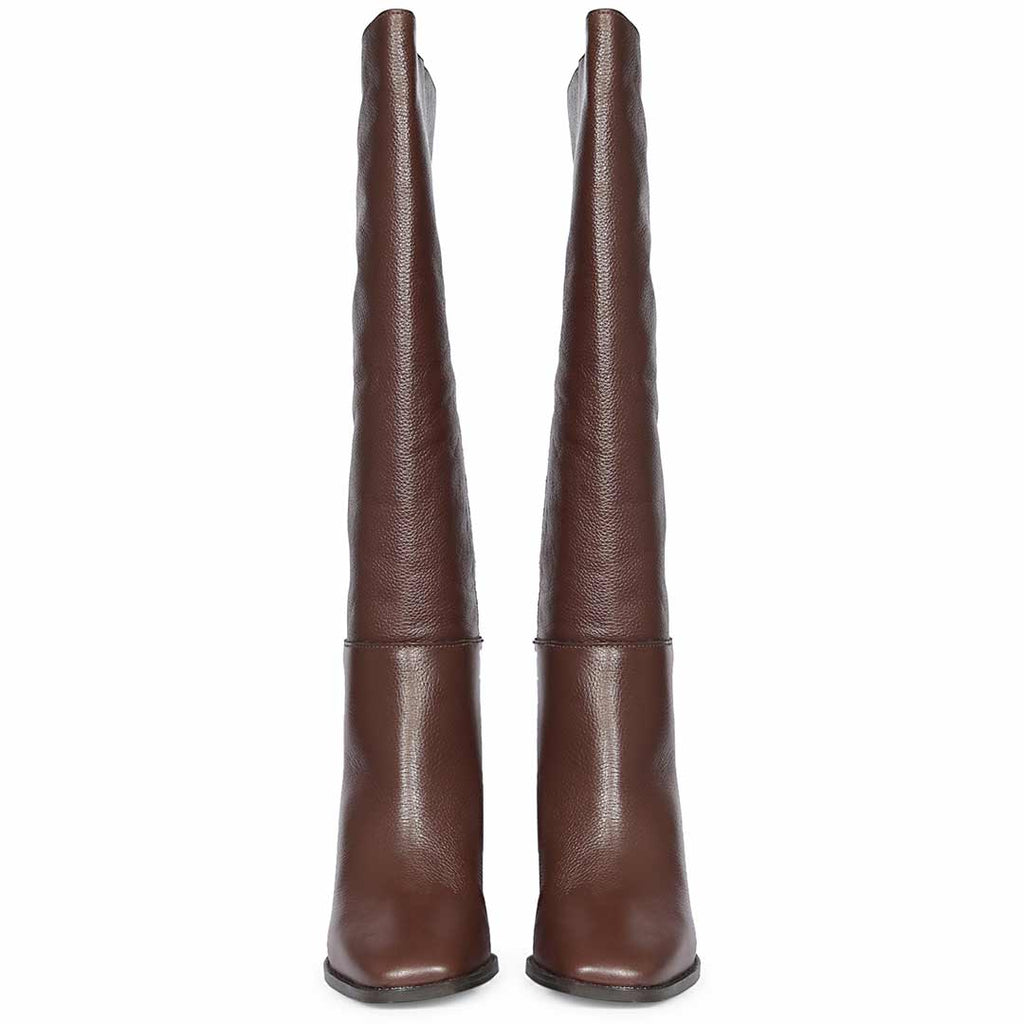 Meet Saint Claretta, the new classic. Set the trend this season in these Slouch knee high Boots from SaintG, these boots are sure to turn heads. Featuring knee high shaft, wide calf, square toe line and fitted on a leather covered mid high block heels. Fleece and leather lined for a luxurious feel, cushioned leather insole provides lasting comfort. The slip on closure boot sit on a tunit sole. This Saint Claretta leather boot is a luxe boot that cleverly combines a stylish youthful outlook. Made from the finest materials and finished with trending design details. These premium quality leather boots are constructed using an anti skid handmade tunit sole which ensures that you do not accidentally fall on any surface. Designed in Milan.