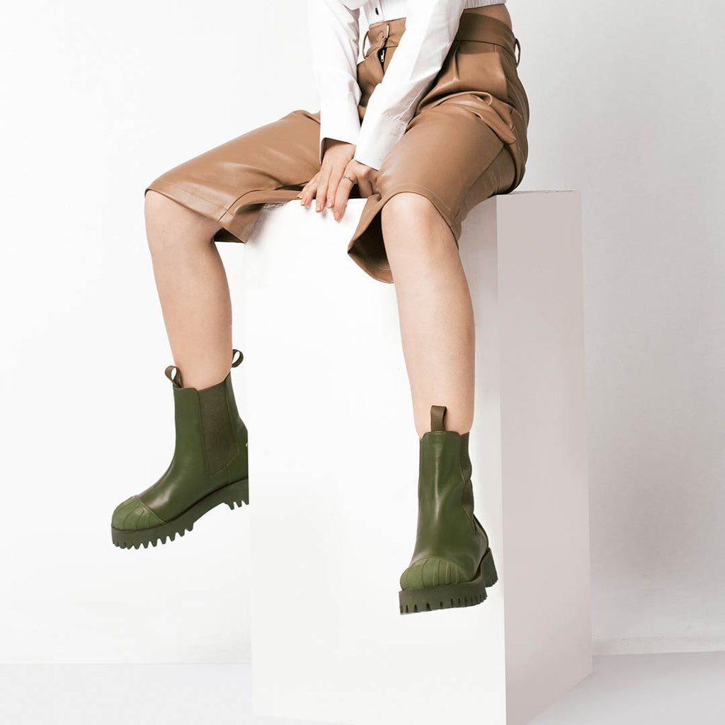 Set the trend this season in these Isla green boots crafted from genuine leather by SaintG, Fitted with elasticated side gores to easily slip on and off. The premium leather upper assures comfort, while the handmade eva sole guarantees traction irrespective of the surface. The pull up tabs completes the design.