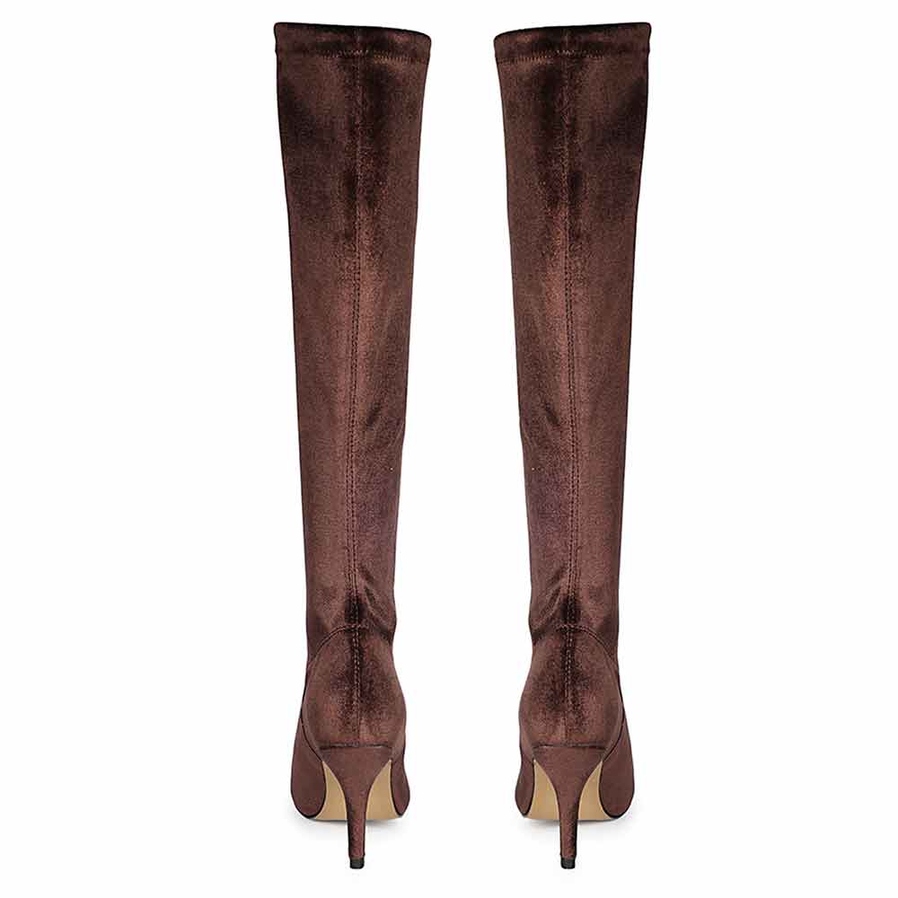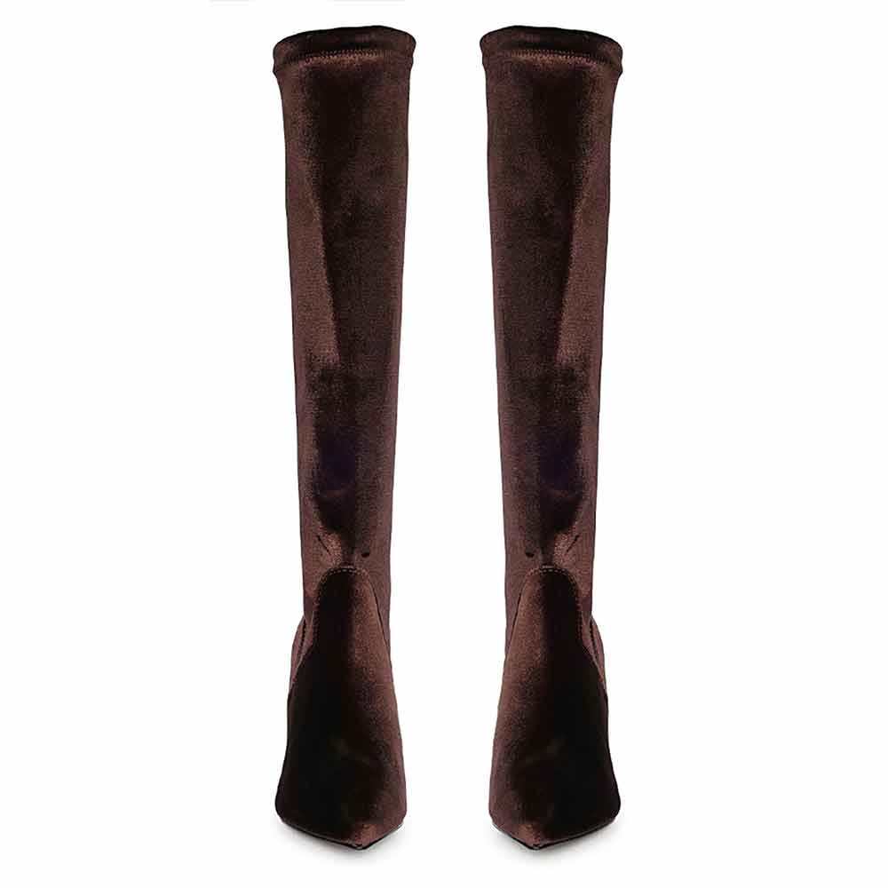 Saint Jemima Bordo Stretch Velvet Knee High Stiletto Boots