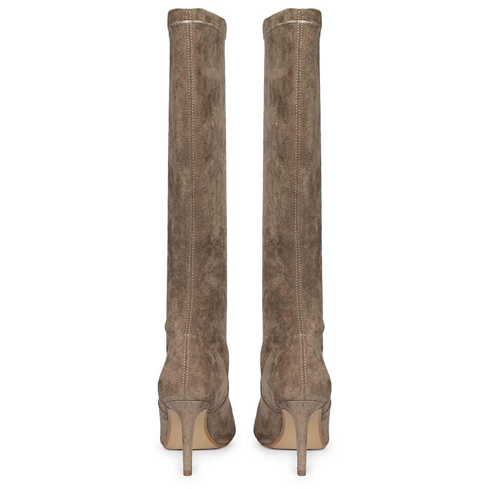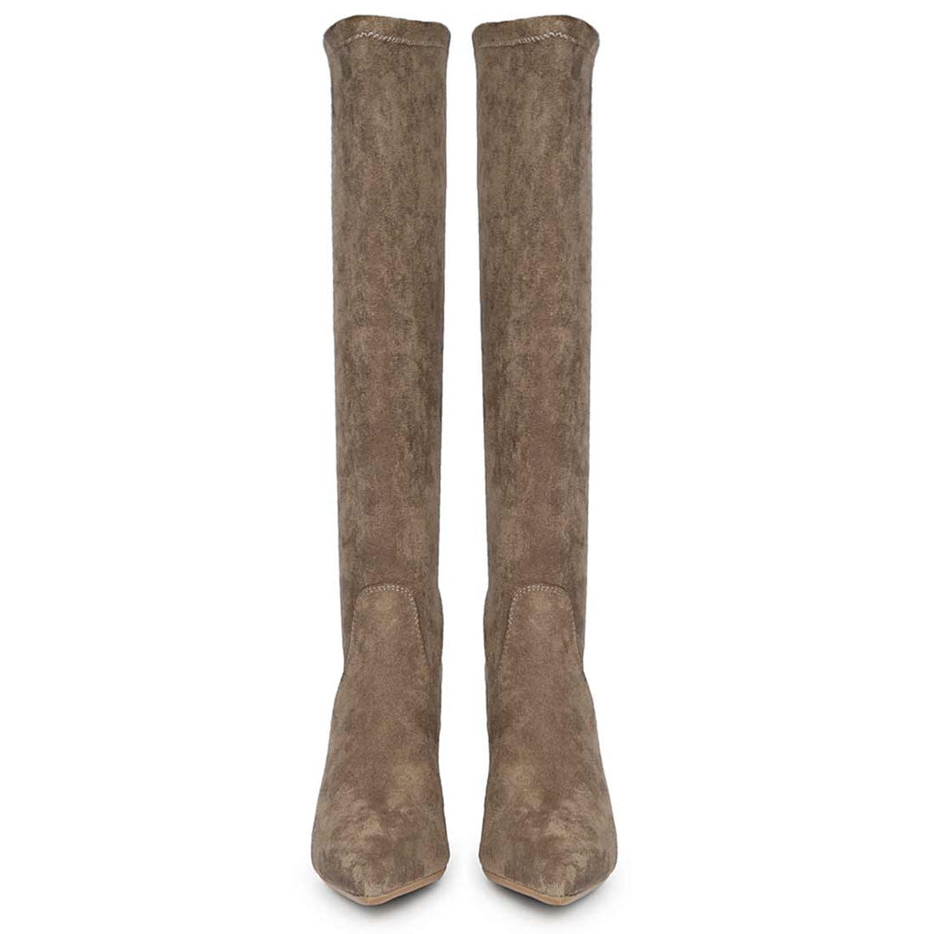 Saint Jemima Taupe Stretch Suede Kitten Heel Long Boots