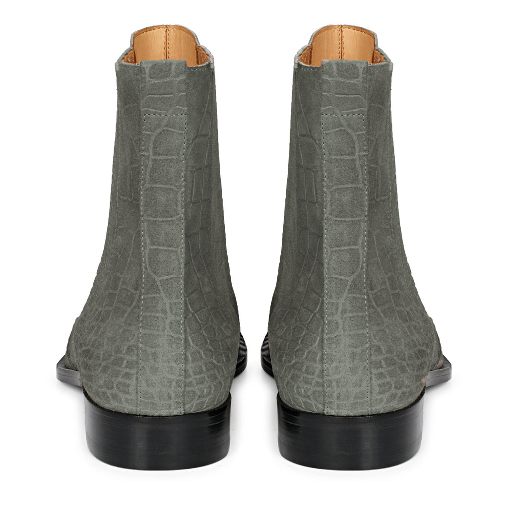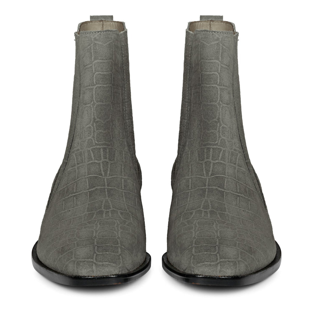 Saint Ollie Grey Croco Print Suede Leather Chelsea boot