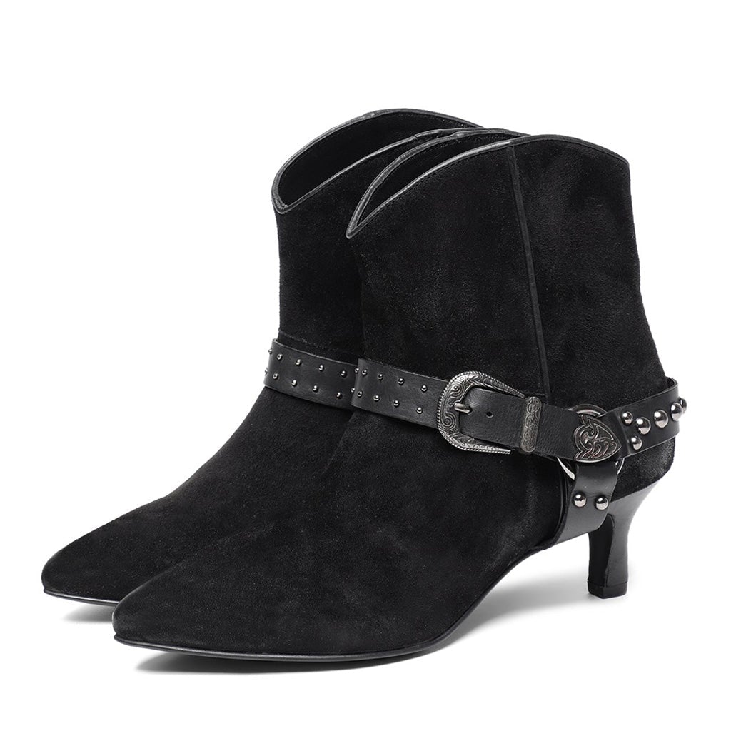 Saint Celine Black Suede Kitten Heel Ankle Boots