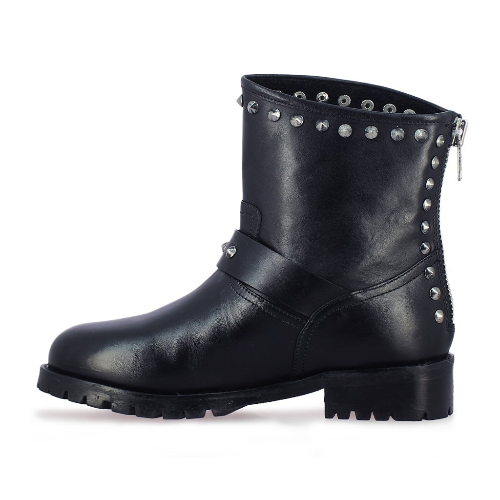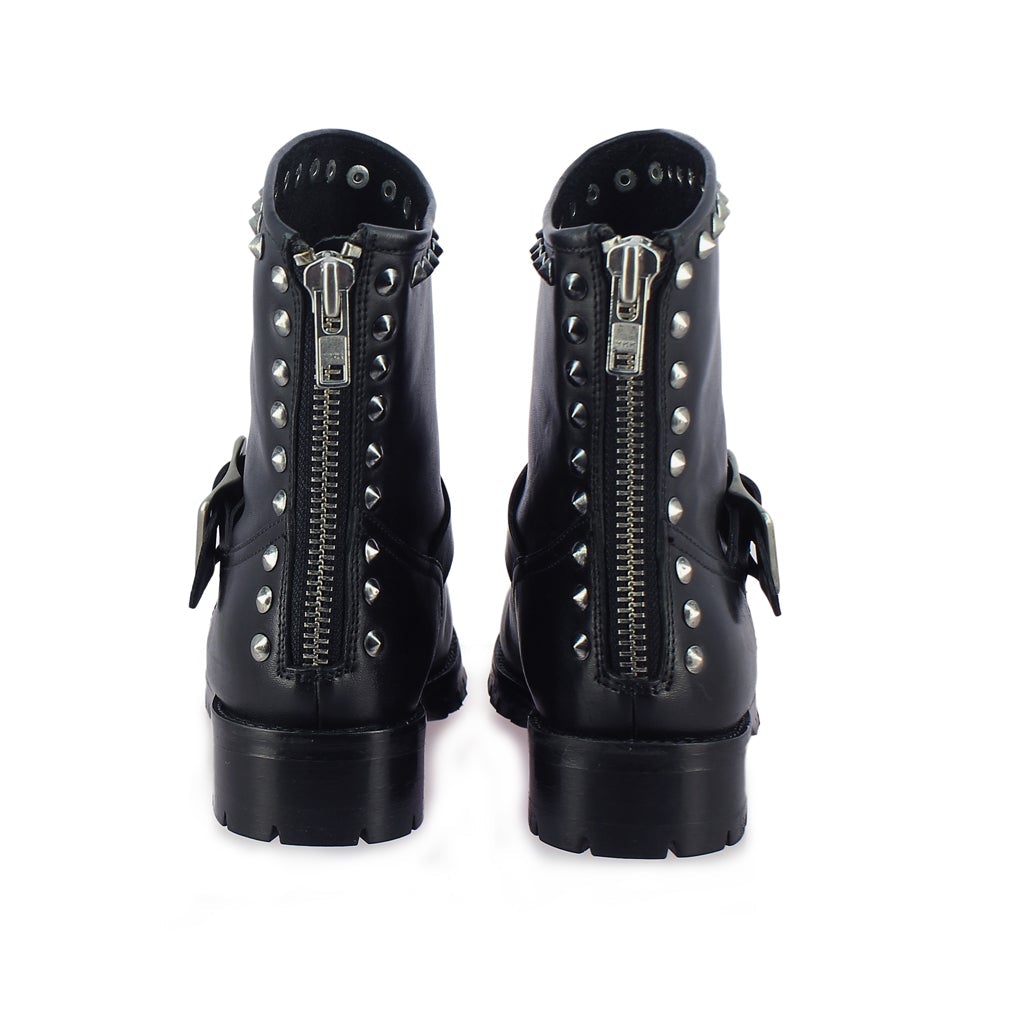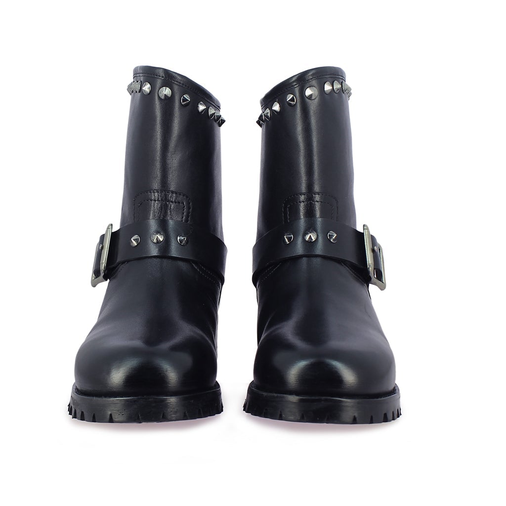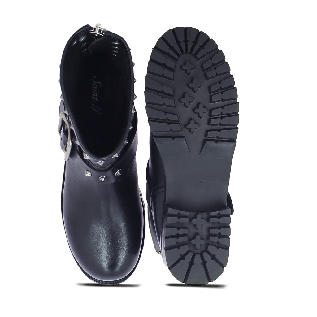 Saint Adelina Metal Studded Black Leather Ankle Boots