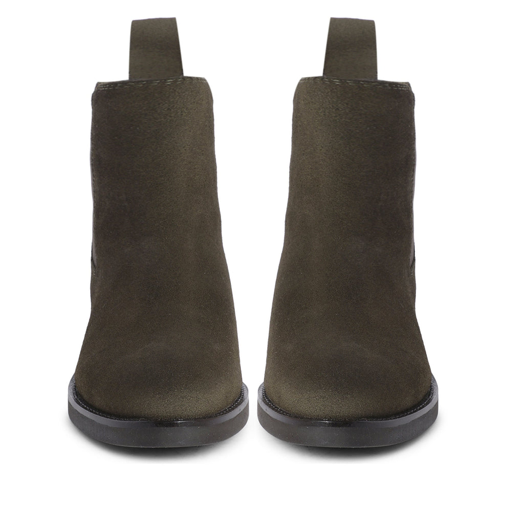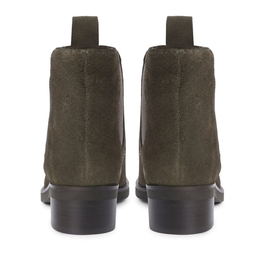 Set the trend this season in these Saint Isa olive slip on ankle boots crafted from suede leather, Fitted with elasticated side gores to easily slip on and off. The premium leather upper assures comfort, while the handmade super comfortable & flexible rubber sole guarantees traction irrespective of the surface, fitted with a rounded toe and set on a slightly raised heel. The Elasticated side panel and pull up tab on the back completes the design. It's a versatile investment for special need.