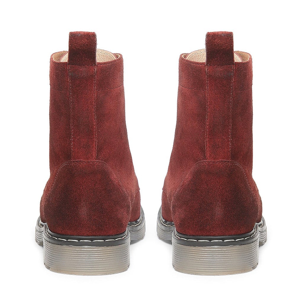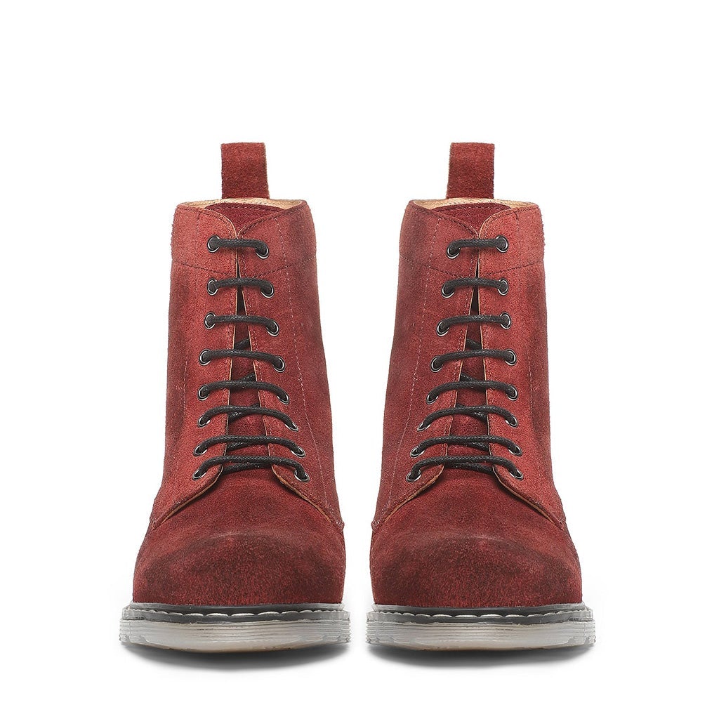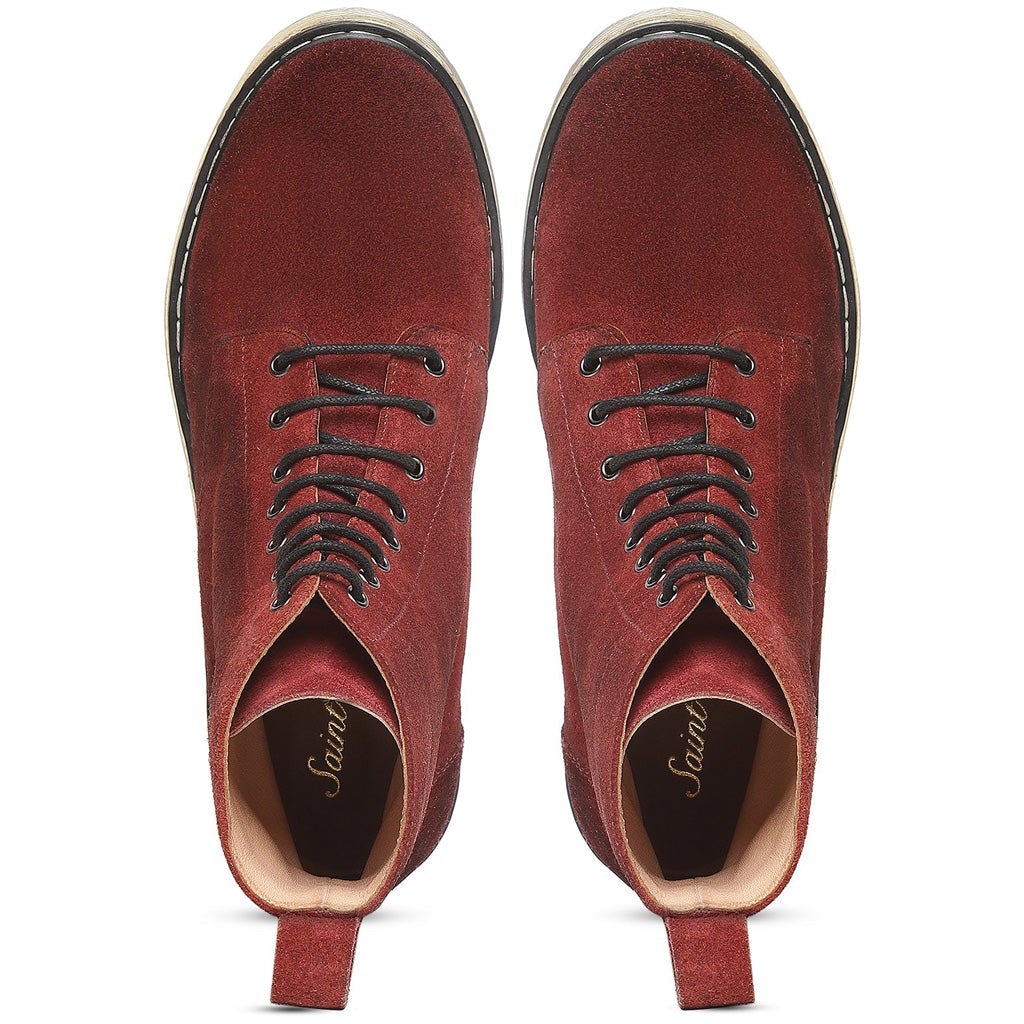 Saint Kiara Red lace-up suede leather boots handcrafted by SaintG's legendary bootmakers, featuring round toe, front lace-up fastening, walking heel and crepe sole to provide traction and stability.