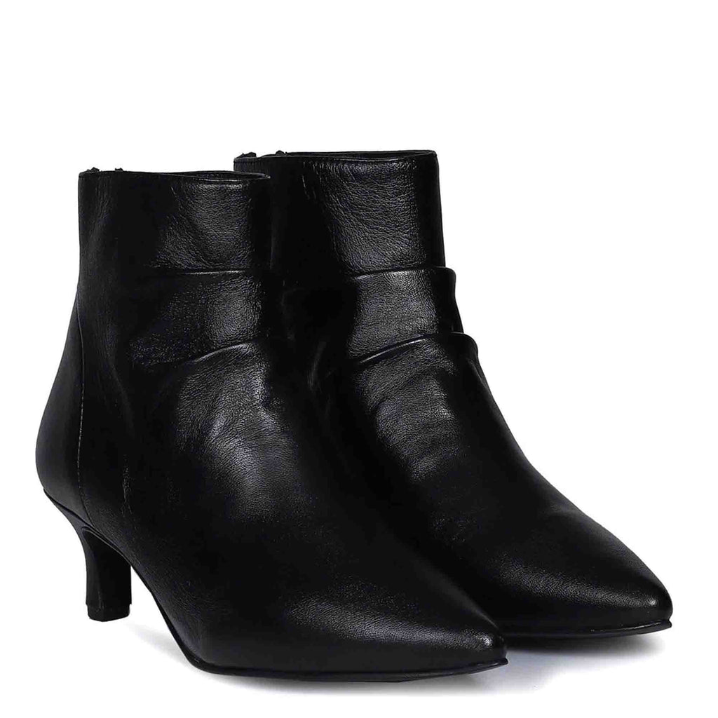 Saint Lovina Black Slouch Leather Kitten Heel Ankle Boots