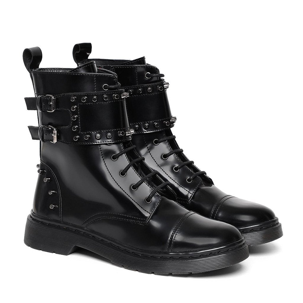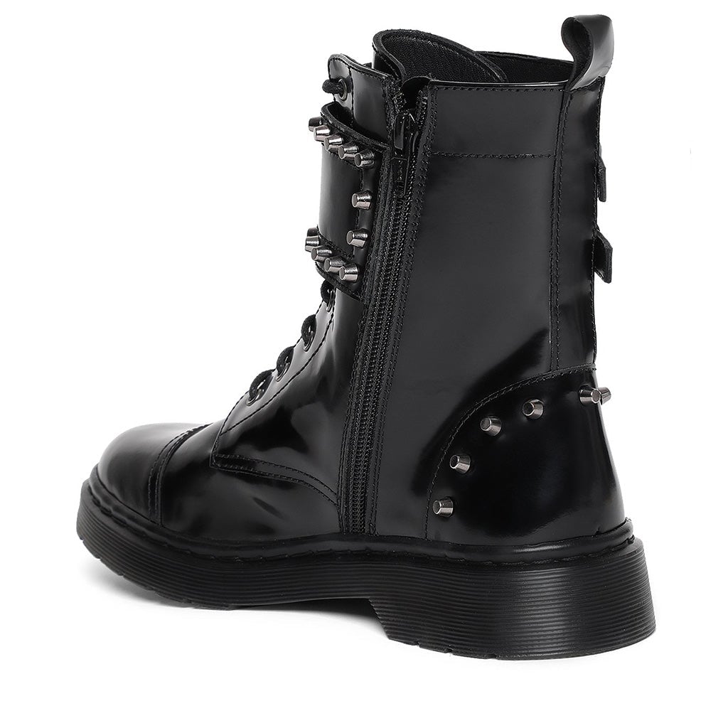 Saint Marcia Black Studded With Lace Up Boots