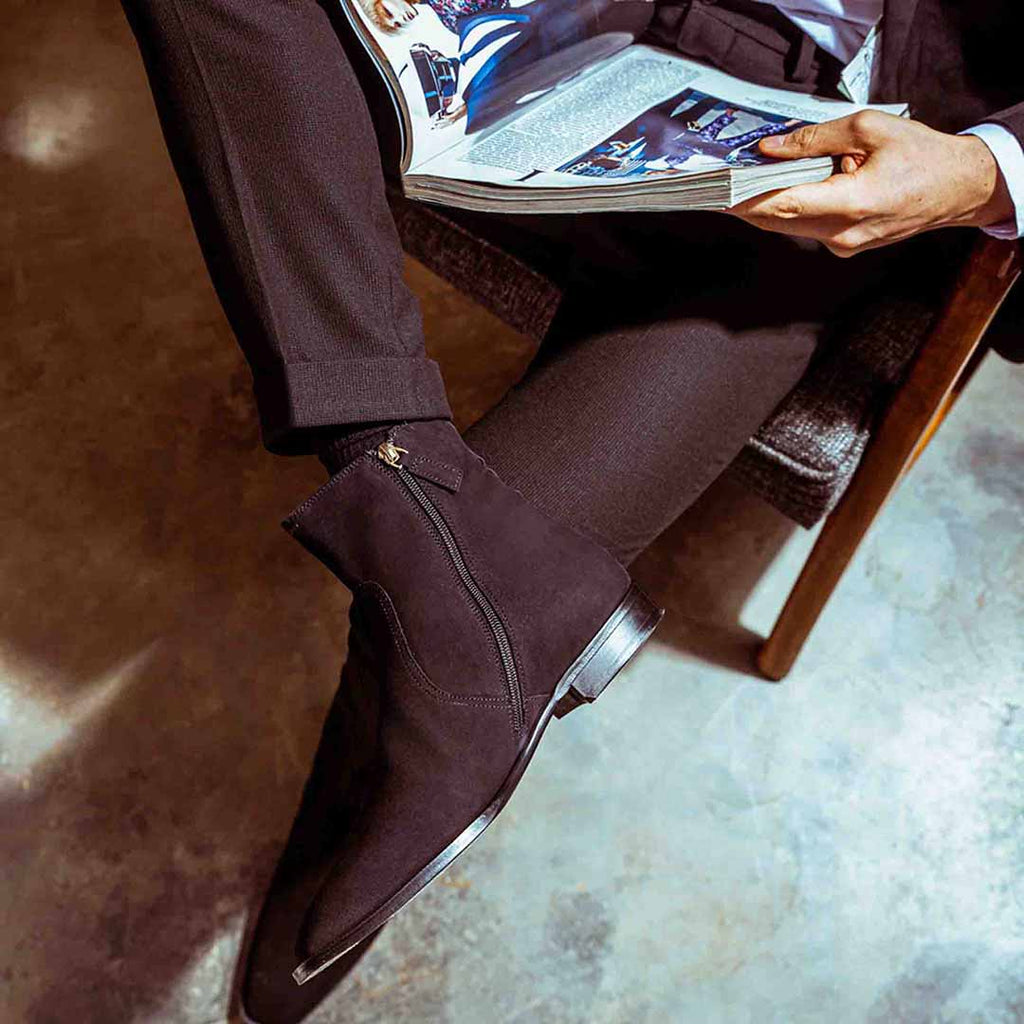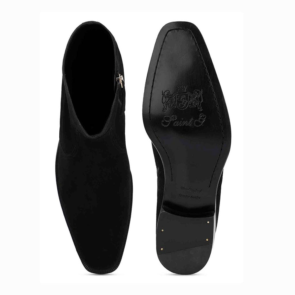 A pair of handcrafted black nubuck leather high ankle boot from SaintG. It comes with inside zip, leather lining, leather insole and hand finished leather sole, nailing on heel with welt.