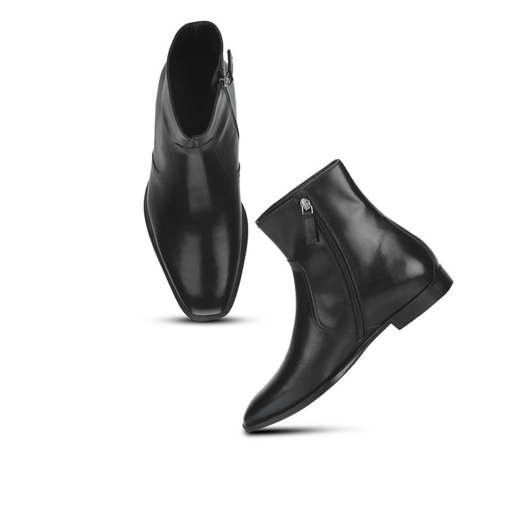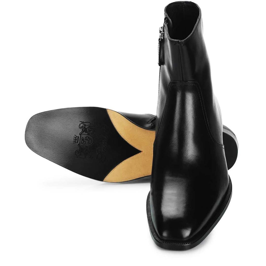 A pair of handcrafted black leather high ankle boot from Saint G. It comes with inside zip, leather lining, leather insole and hand finished Italian leather sole, nailing on heel with welt.