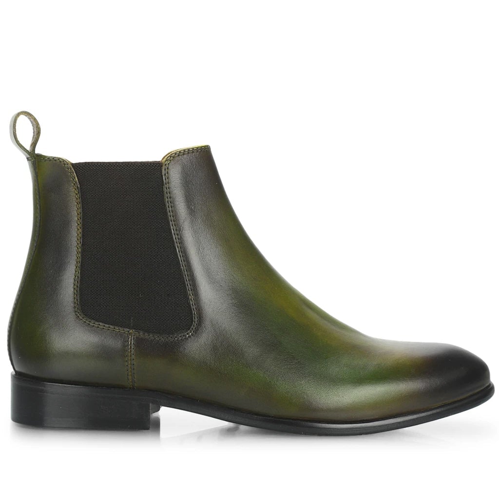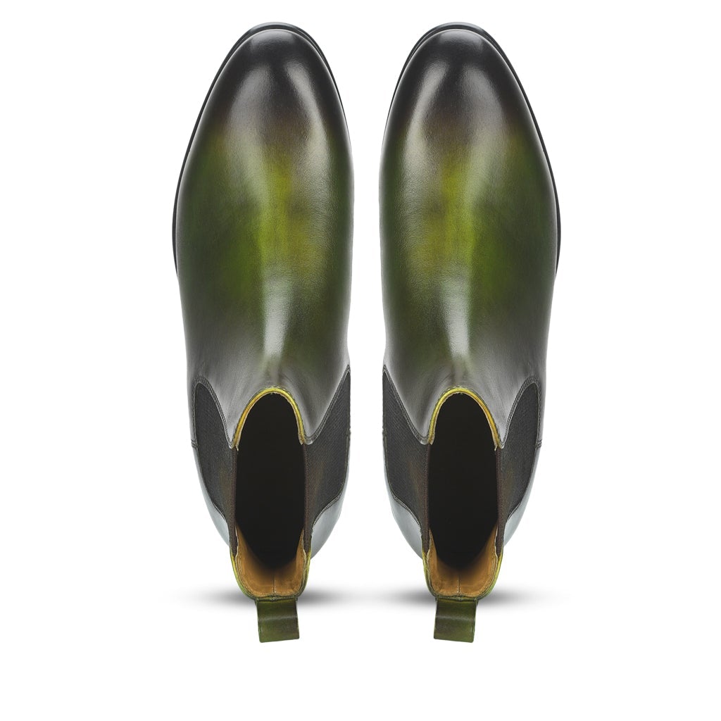 Saint Agostino Two Color Toned Olive Leather Chelsea Boot