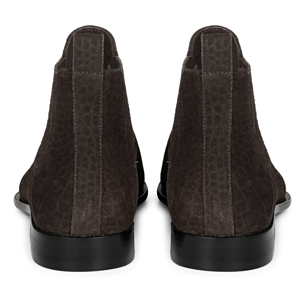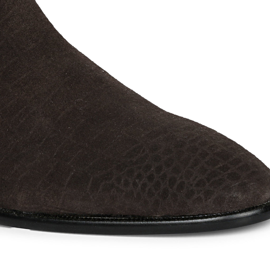 Saint Illiad Brown Croco Print Suede Leather Chelsea boots