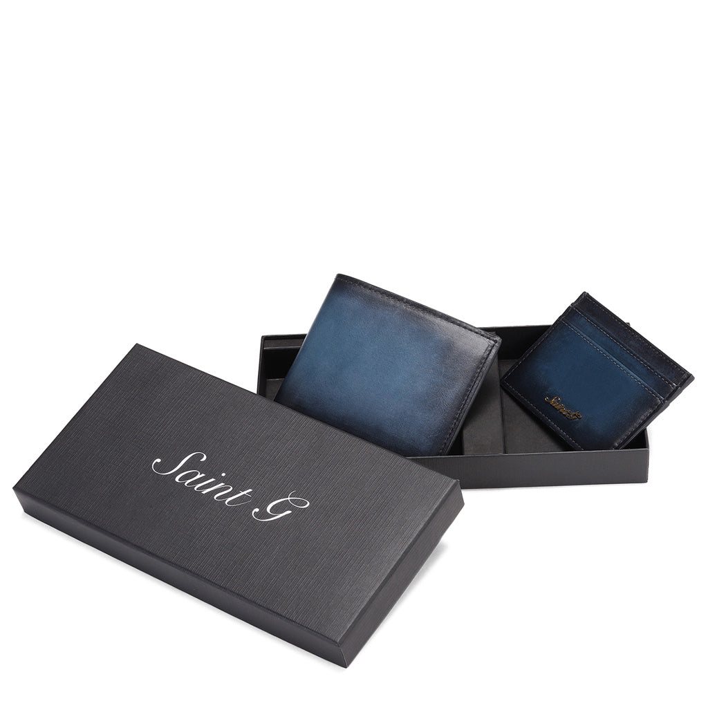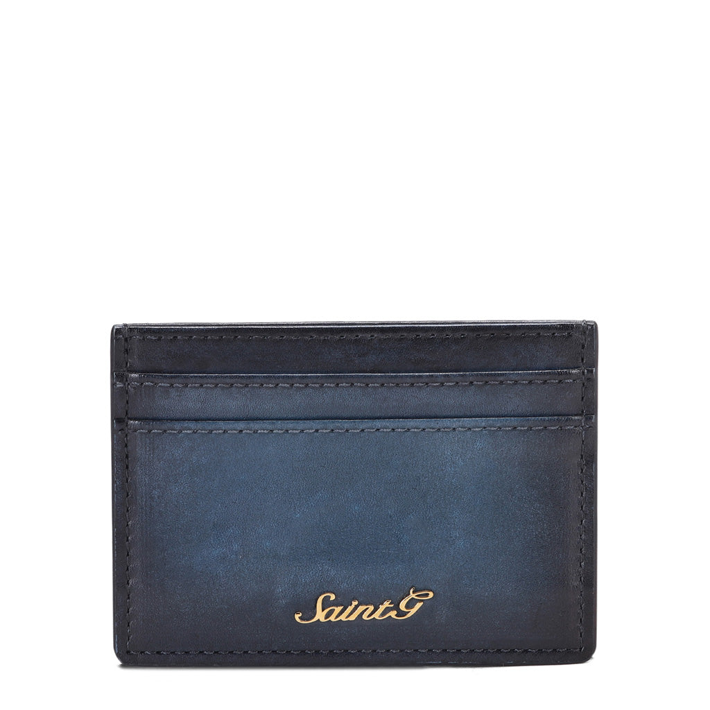Handcrafted Card Holder:- A handcrafted high-quality two toned blue color genuine leather card holder, featuring A ROYAL SAINTG METAL LOGO, it shows your personality and style every time you pull it out. It comes with 4 slip pockets for all types of cards; 1 slip pocket for currency.