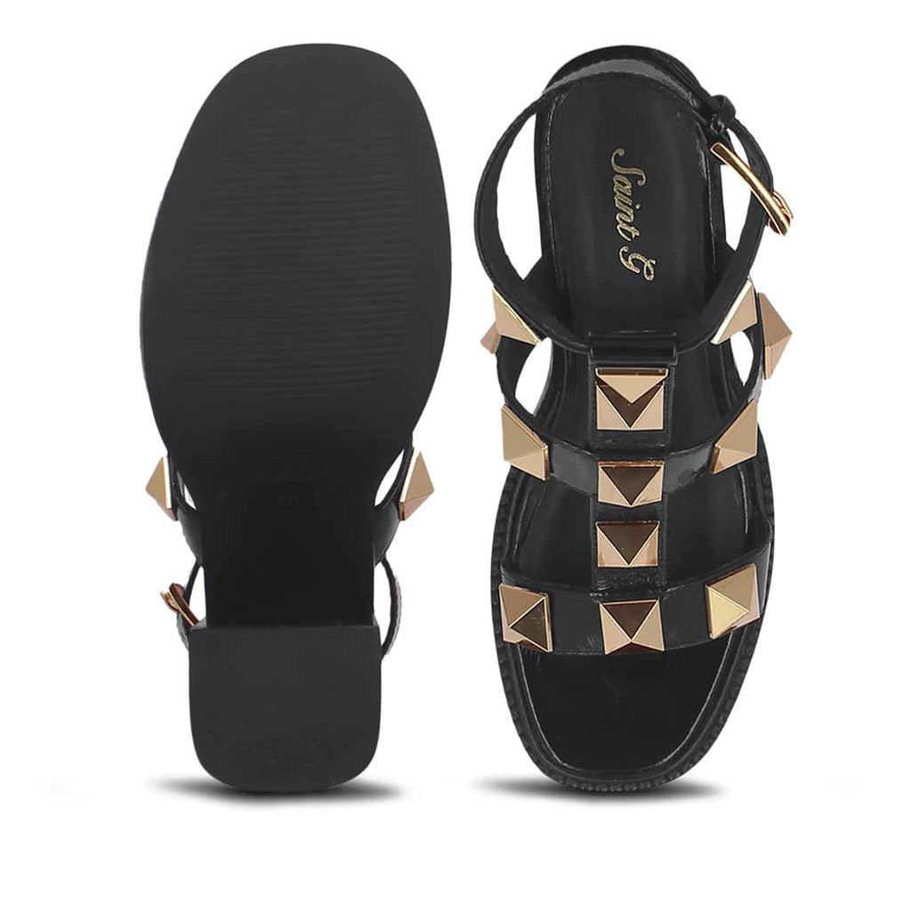 These Agnes studded heels are sure to make an impression. In black crinkle patent leather, they feature studded straps, a veneer covered block heel and an adjustable ankle strap. Ready for a glam style, they will add a great accent to any outfit!