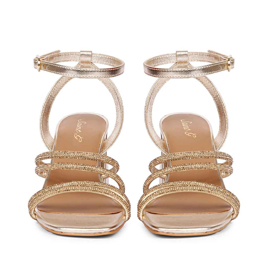 Saint Aldina Crystal Cord String Gold Leather Jewel Block Heels