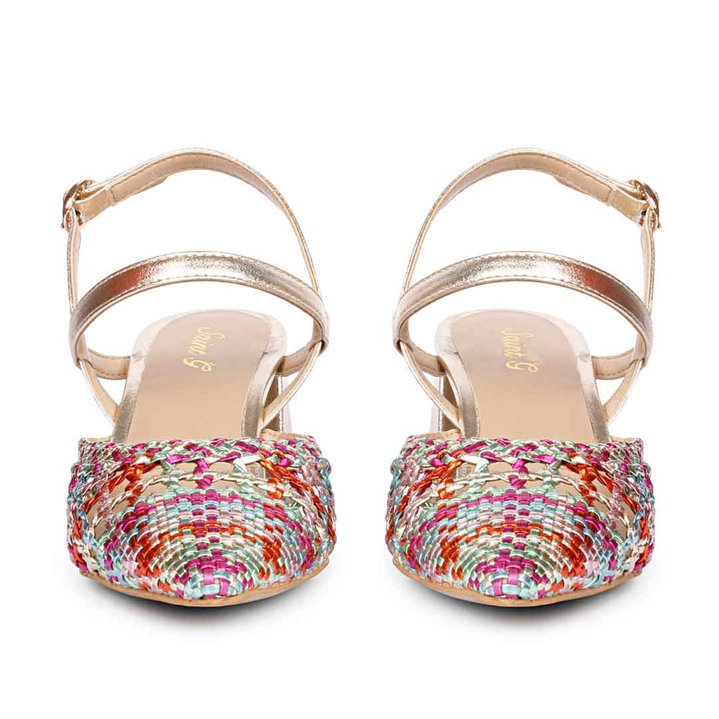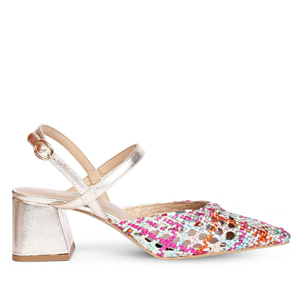 Saint Cianna Multi Metallic Woven Leather Block Heels