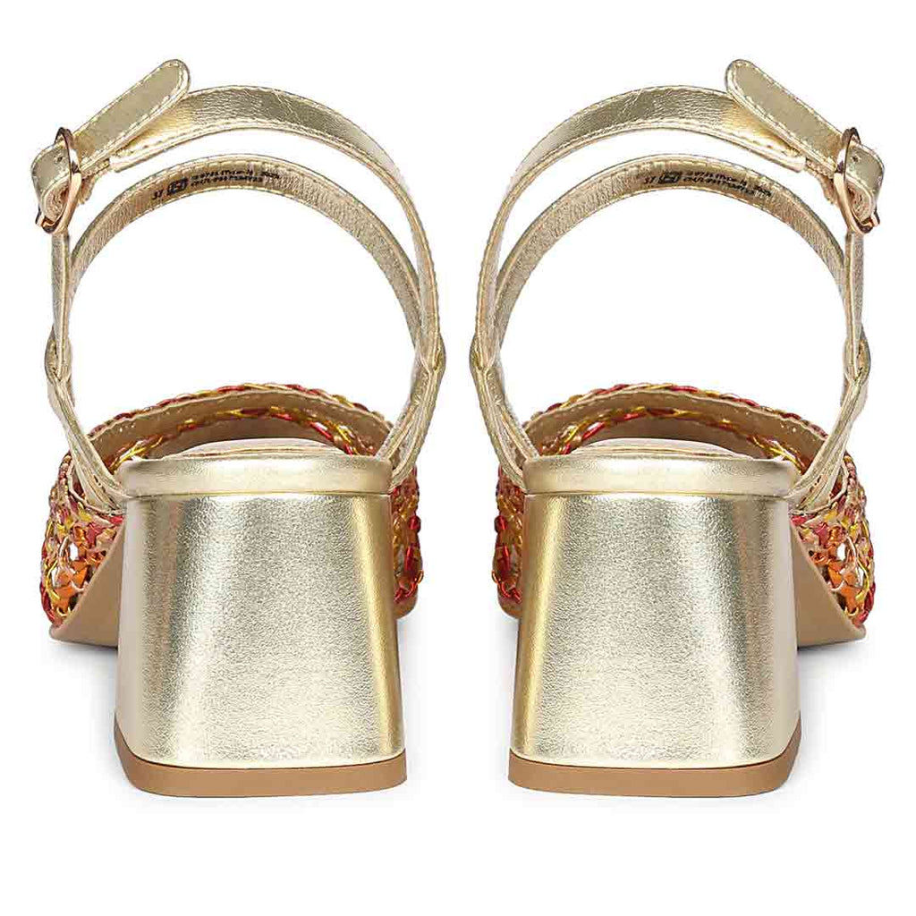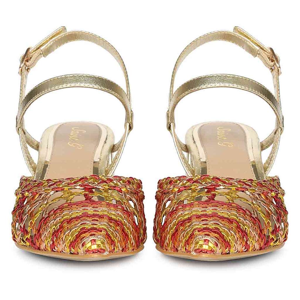 Saint Cianna Orange Multi Hand-Woven Leather Block Heels