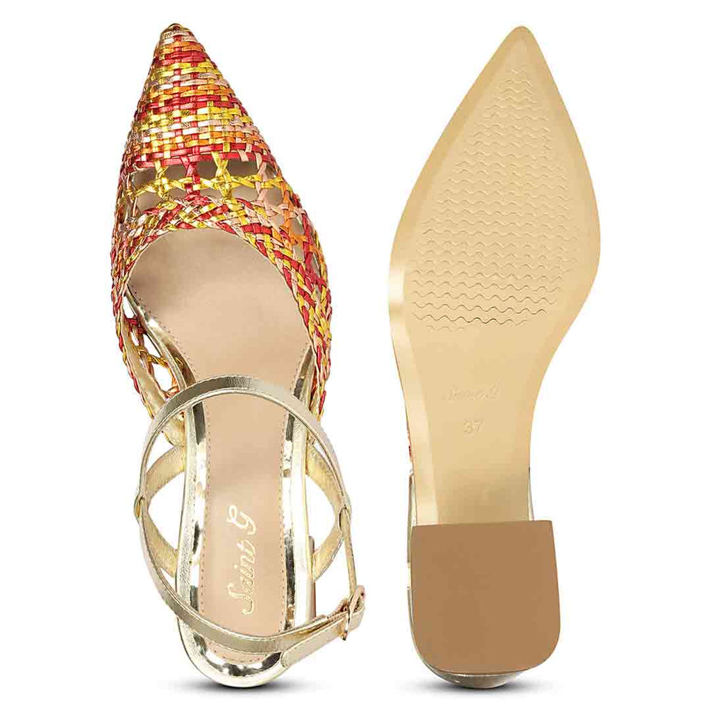 Upper - Orange, Multi Woven & Gold Metallic Leather