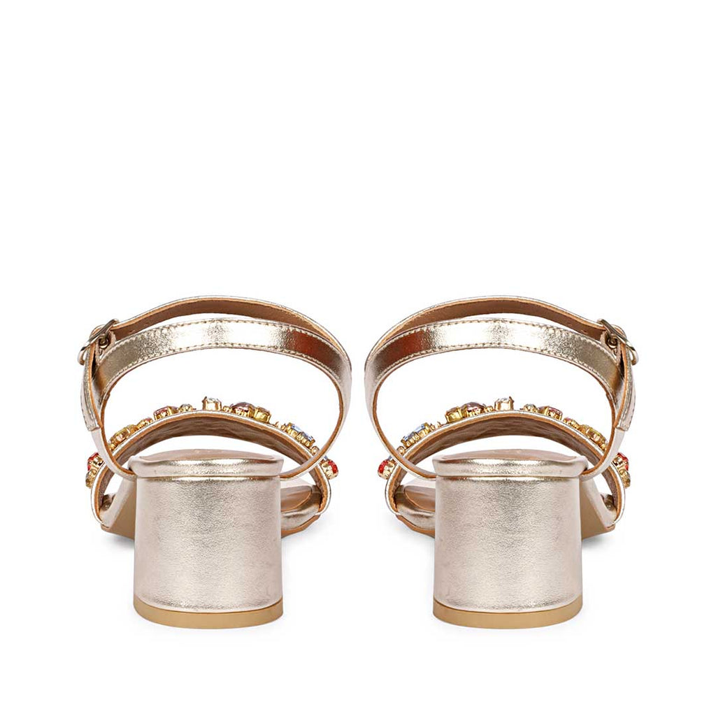 Saint Ella Multi Stones Decor Gold Leather Block Heels