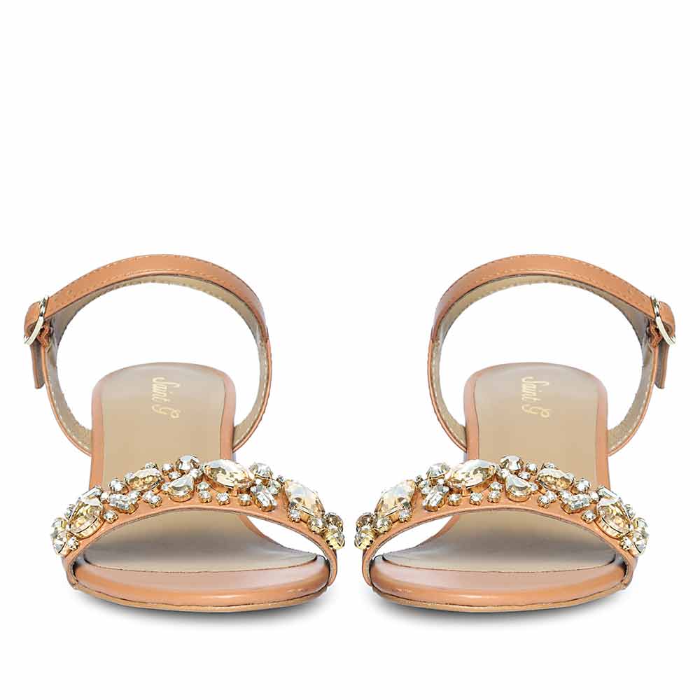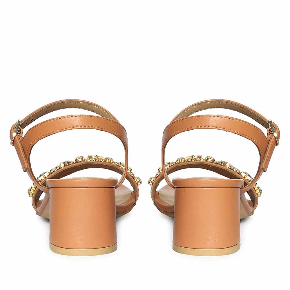 Saint Ella Stones Embellished Tan Leather Block Heels