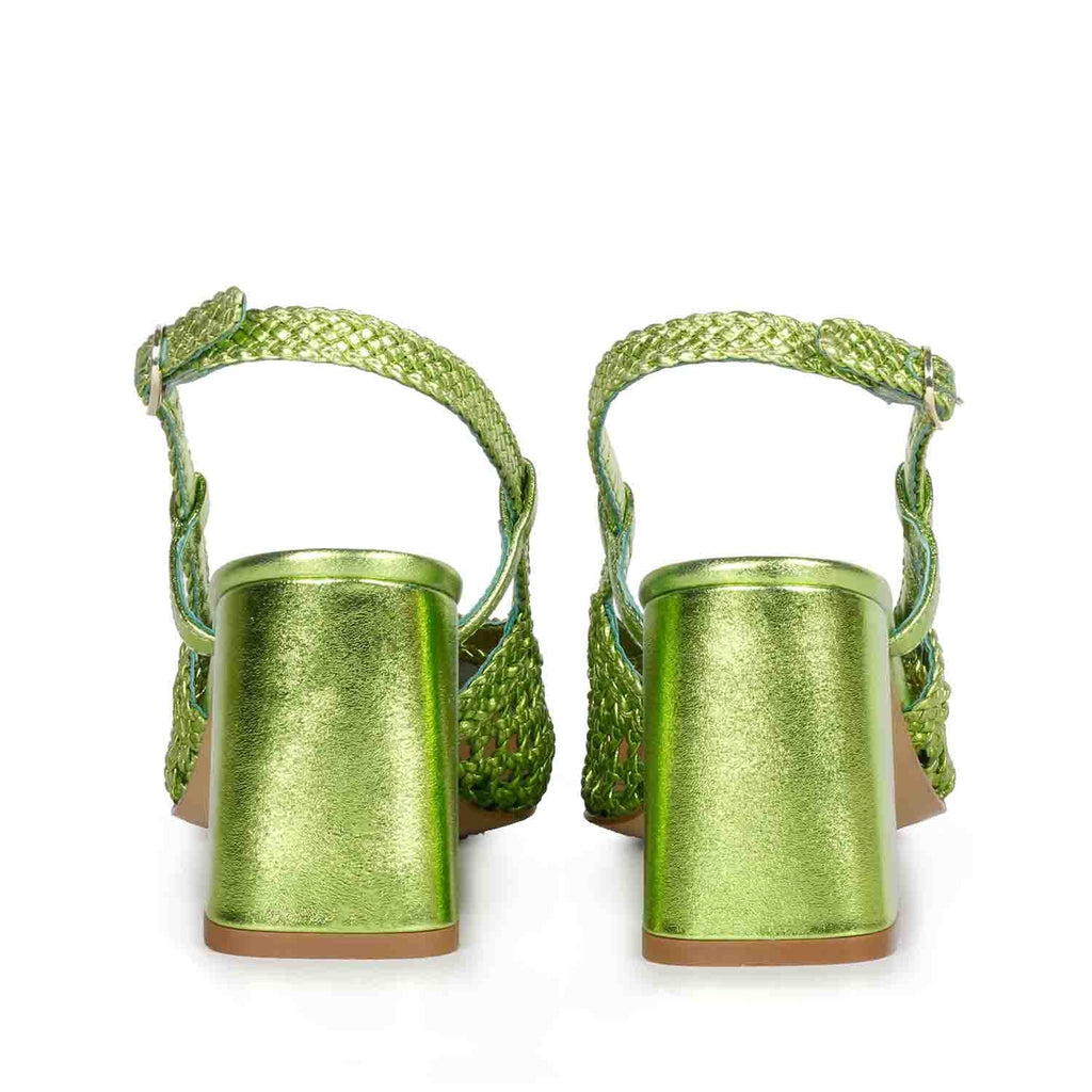 Saint Fabienne Green Metallic Hand Woven Leather Block Heels
