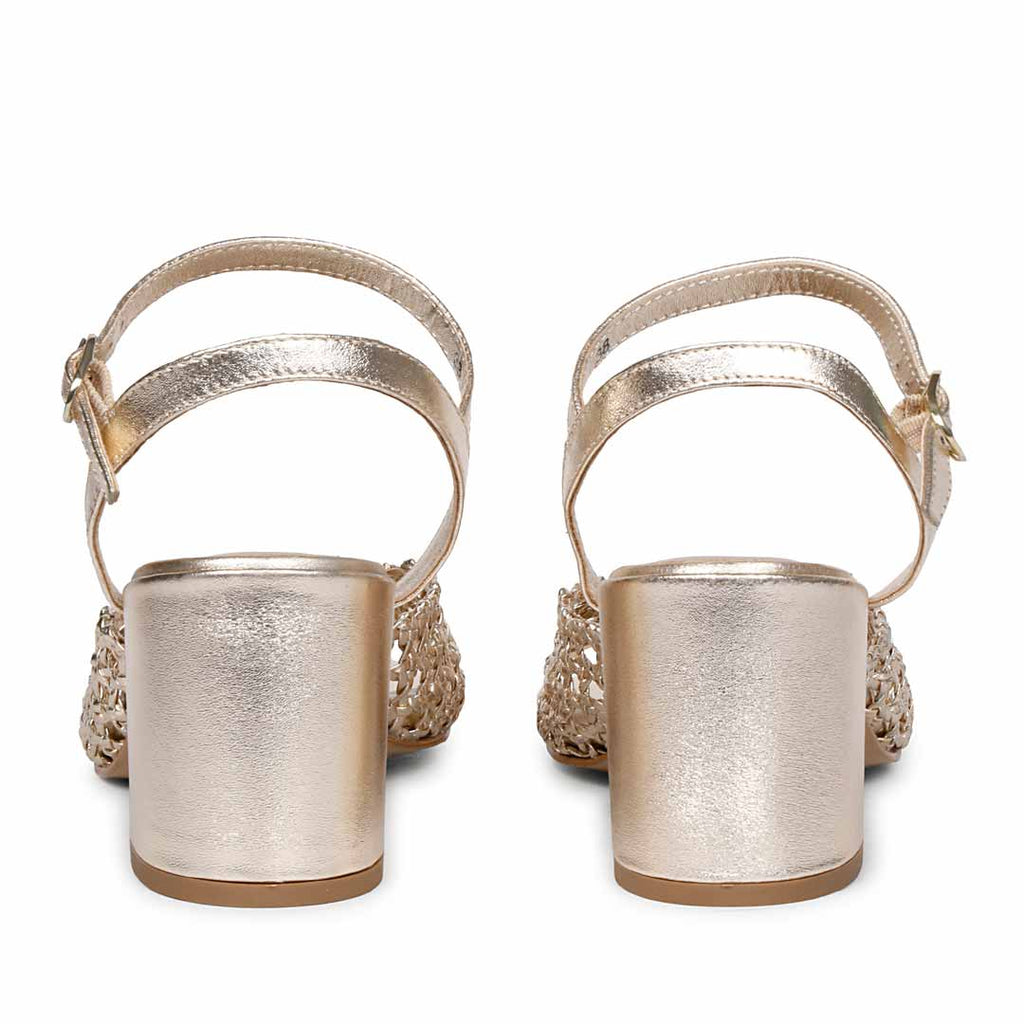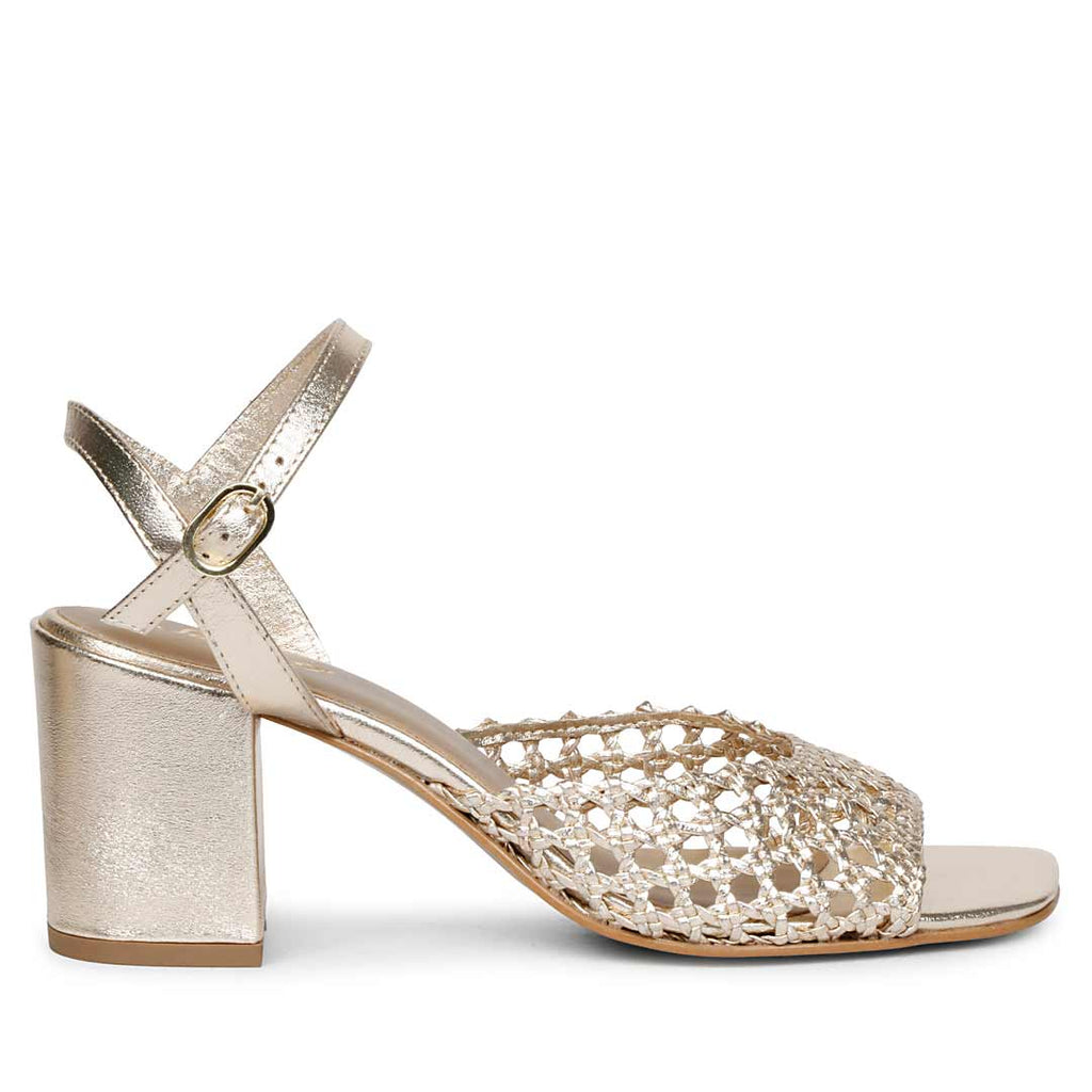 Saint Felicia Gold Woven Leather Block Heels