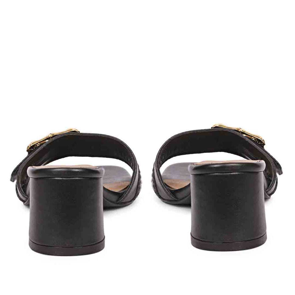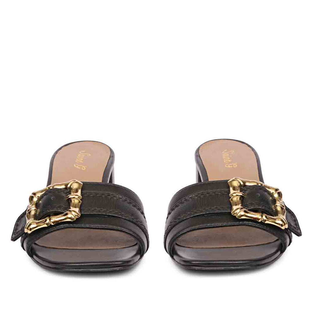 Saint Flavia Gold Square Buckle Leather Block Heels