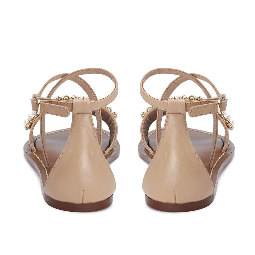Saint Adilia Beige Stone And Pearl Embellished Leather Sandal
