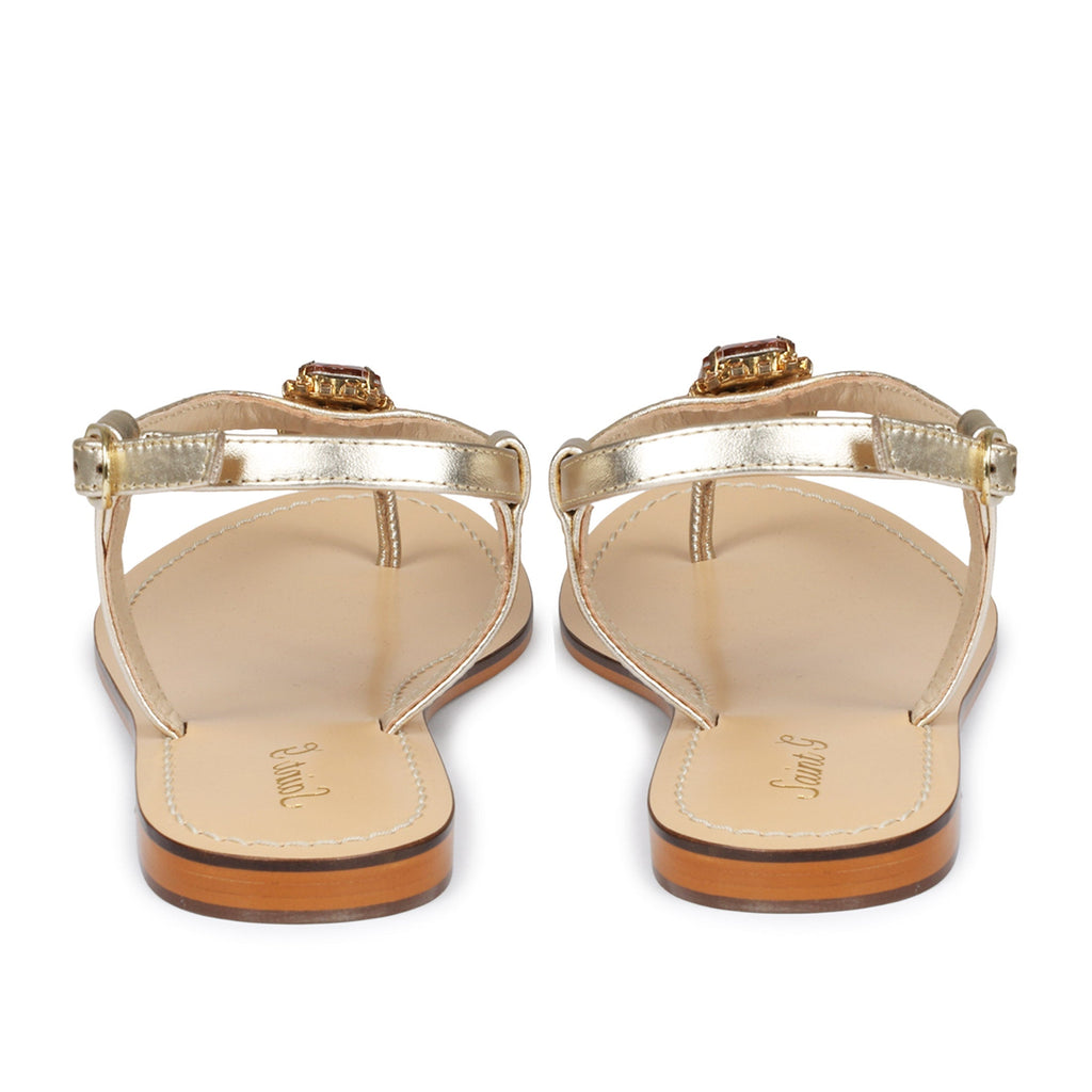 Step into the spotlight with this rose gold stone embellished leather sandal from SaintG. Its secured with buckle fastening leather strap. Contrast insole stitching, leather lining and tunit sole.  Made from finest material and quality products.