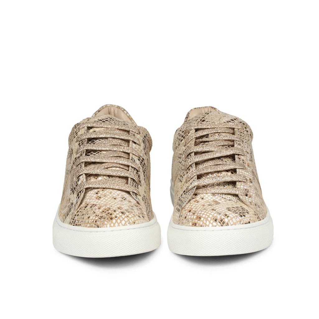 Beige Textured Python Leather Sneakers