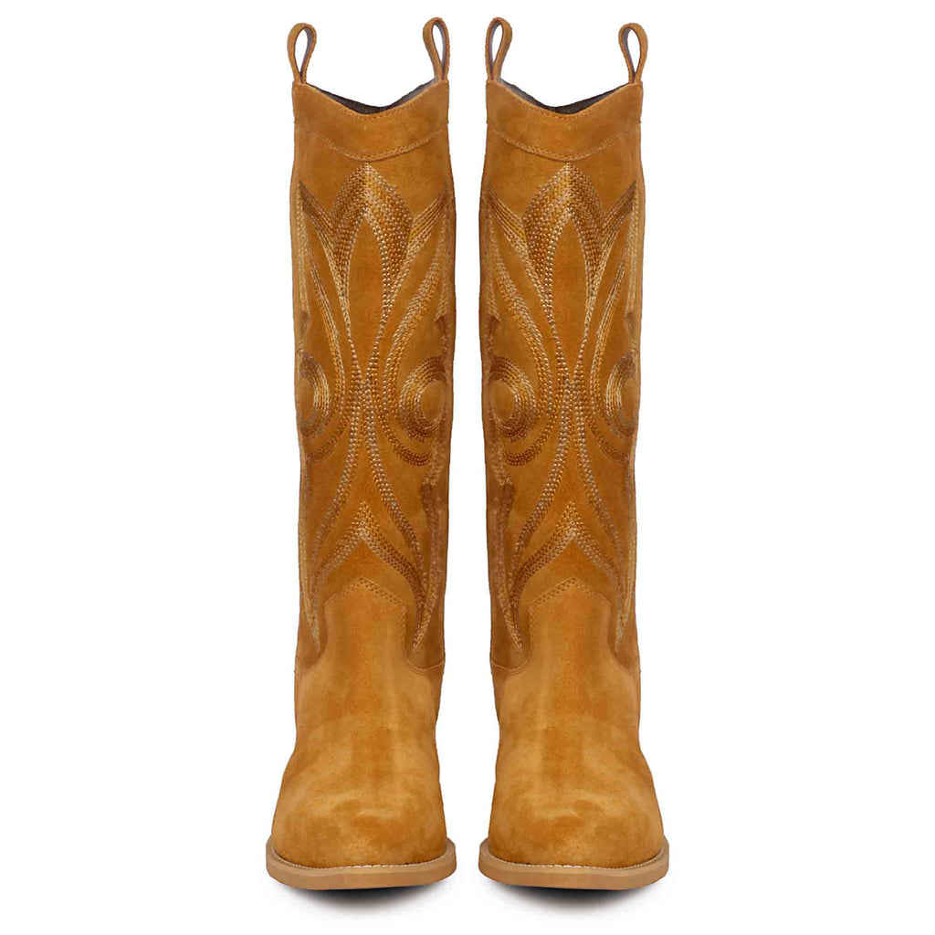 Saint Martina Tan Stitched Leather Handcrafted Cowboy Boots