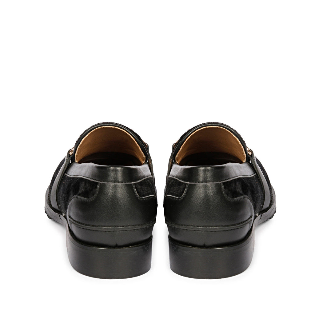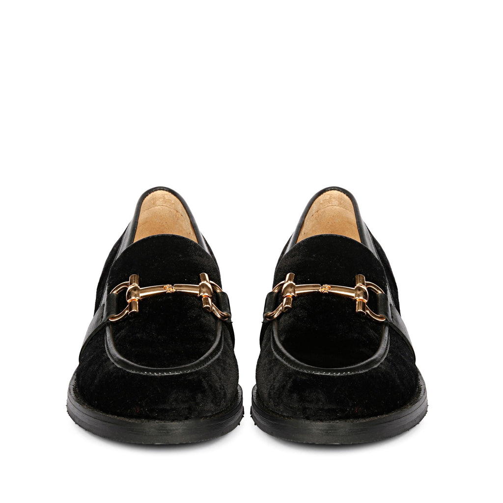 Add tons of glamour to your look with these Cinzia leather moccasin from SaintG. These design showcases a slip-on profile with a gold horsebit at vamp. Crafted from black velvet-leather upper, soft leather lining, padded leather footbed, rounded toe and low heels. These chic pumps will make you shine.