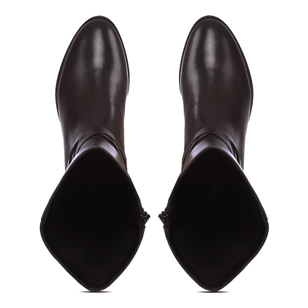 Saint Damaris Dark Brown Leather Buckle Decor Knee High Boots