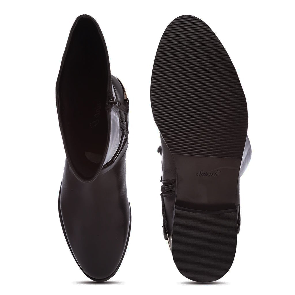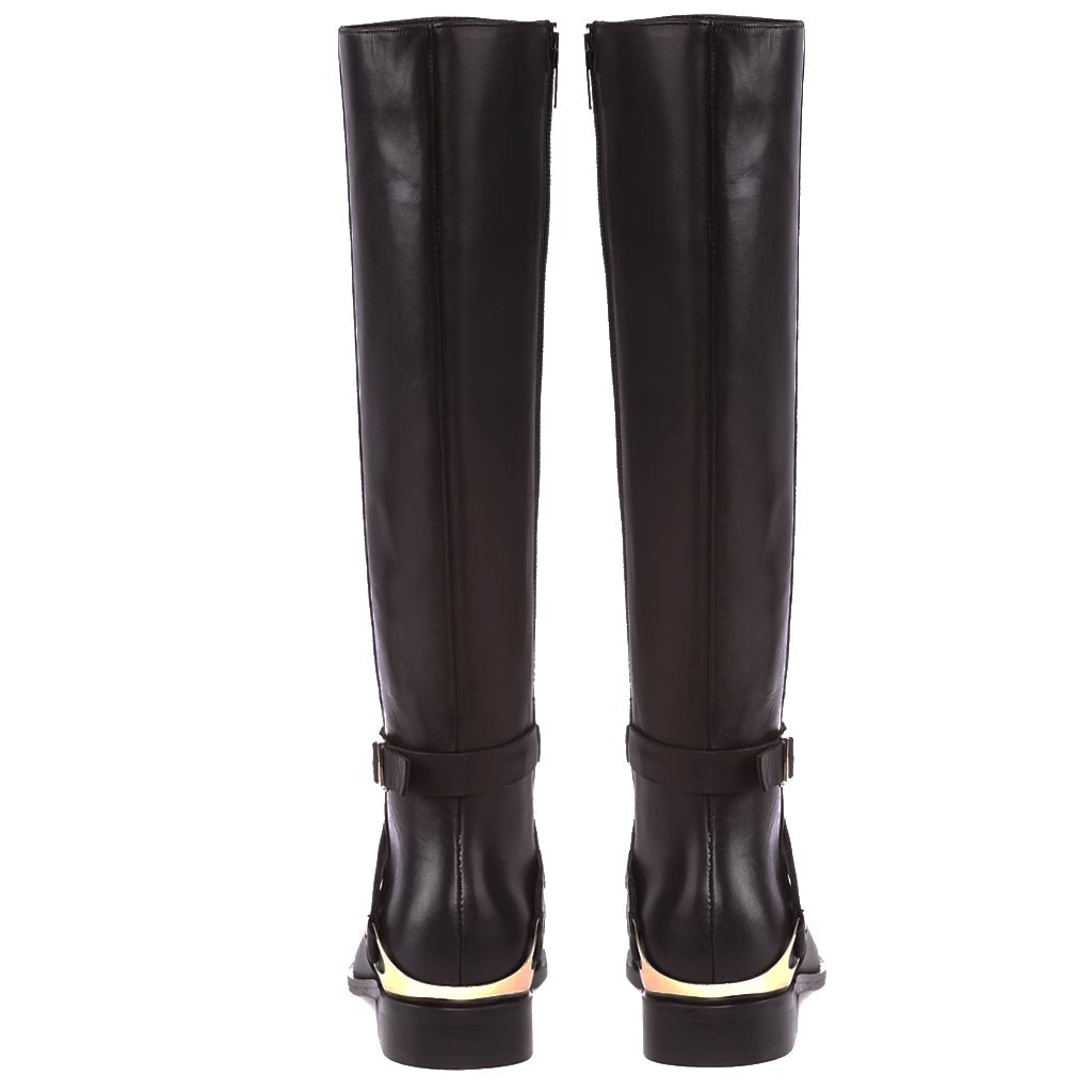 This boot is entirely made of genuine leather and adorned with a gold- coloured metal that promises to add a subtle shine to any outfit.
