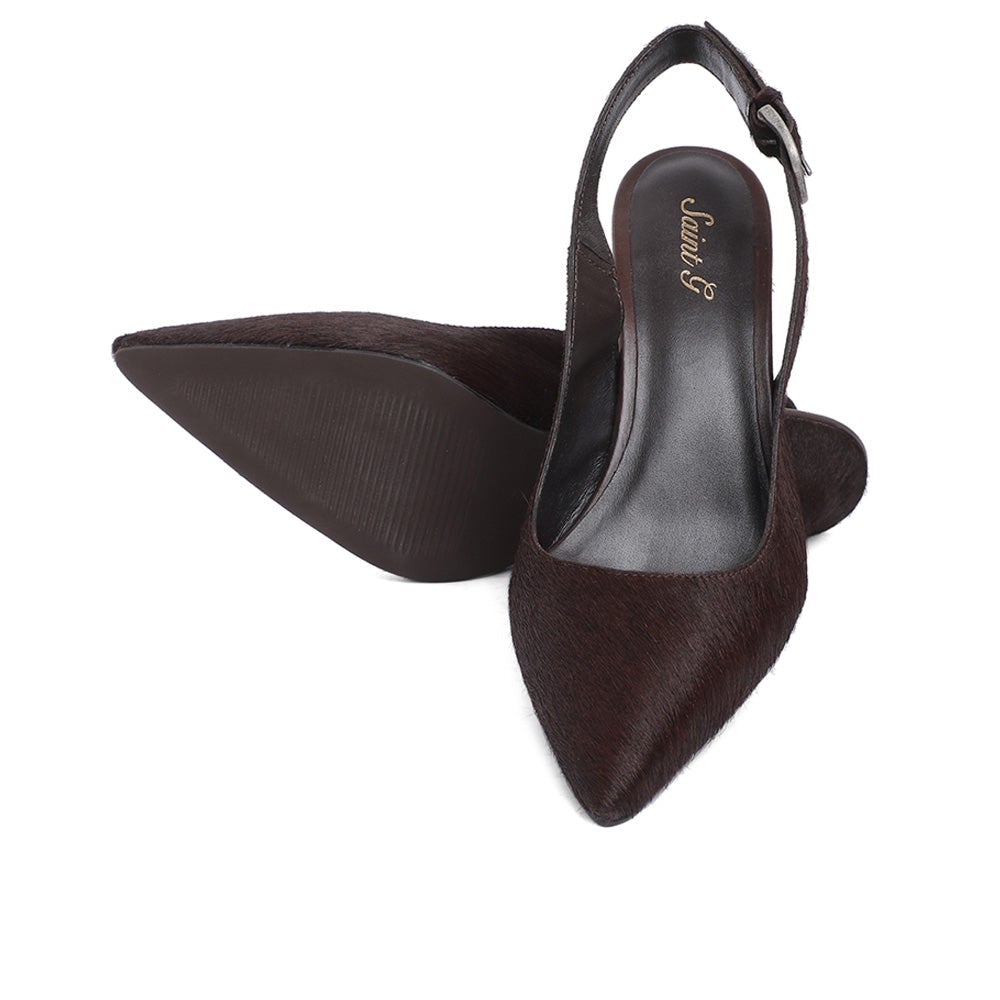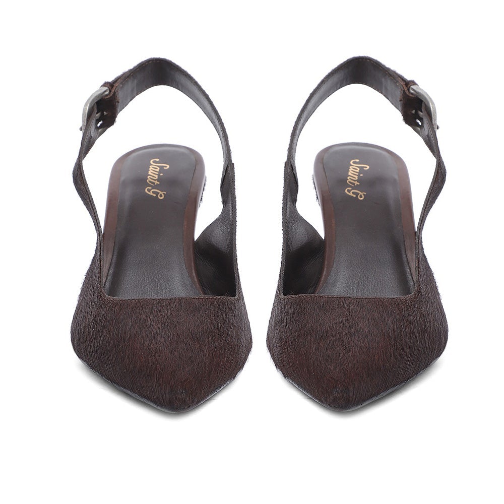 Saint Ginevra Brown Pony Hair Leather Handcrafted Kitten Heels