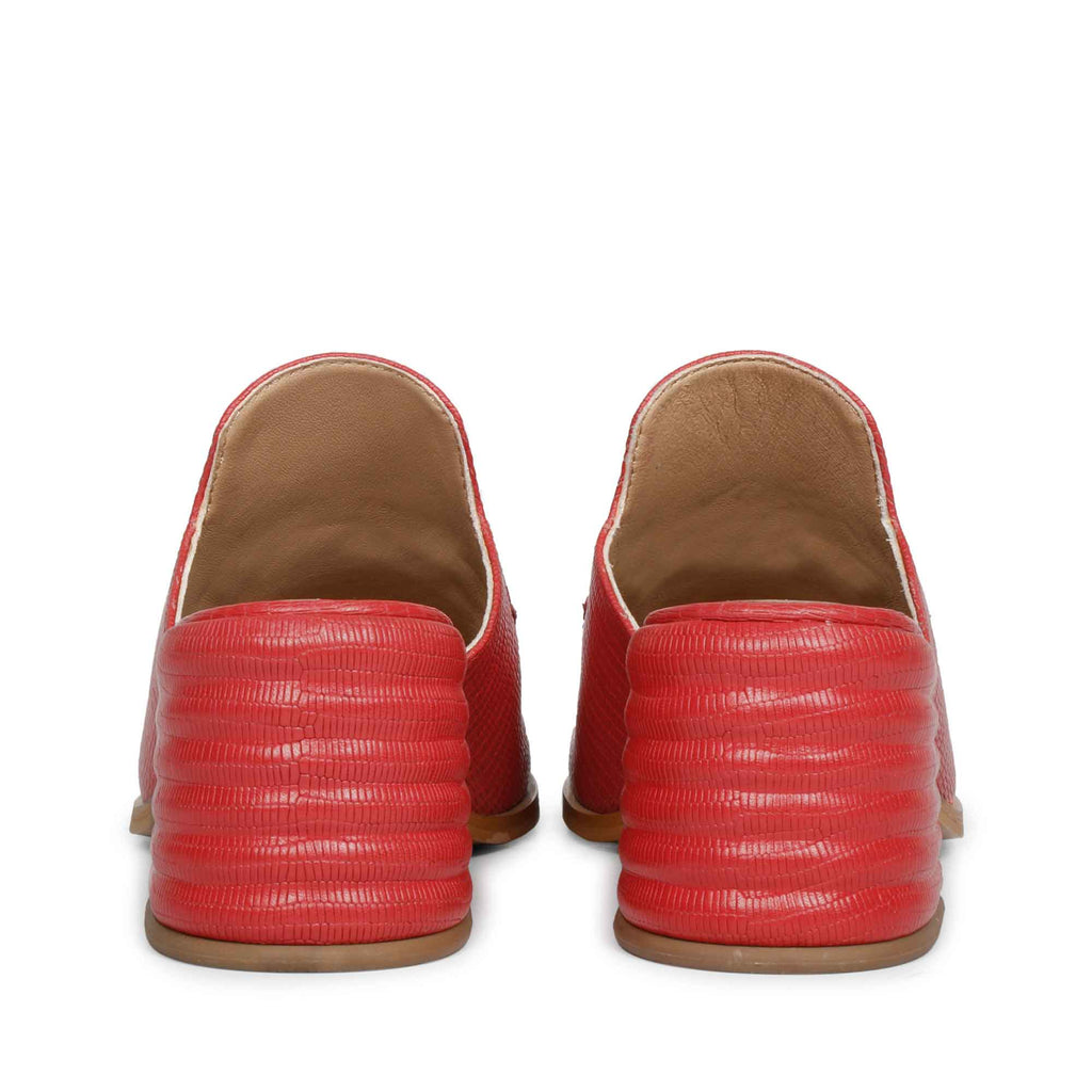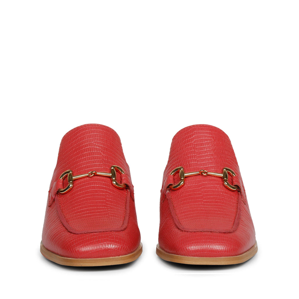 Saint Jasmine Red Lizard Print Leather Moccasins