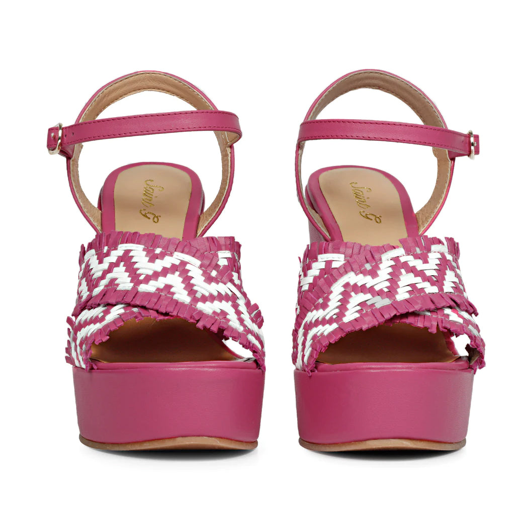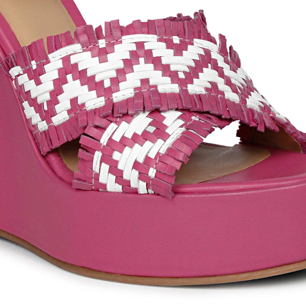 Glenda Hand Woven Hot Pink Leather Wedge Heels