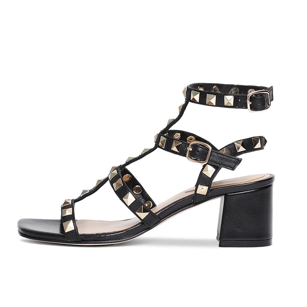 Saint Angela Black Gold Leather Square Metal Studded Block Heel