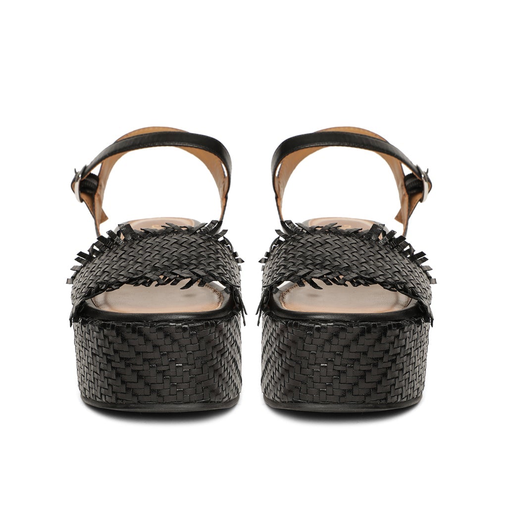 Saint Claire Black Woven Platform Sandals