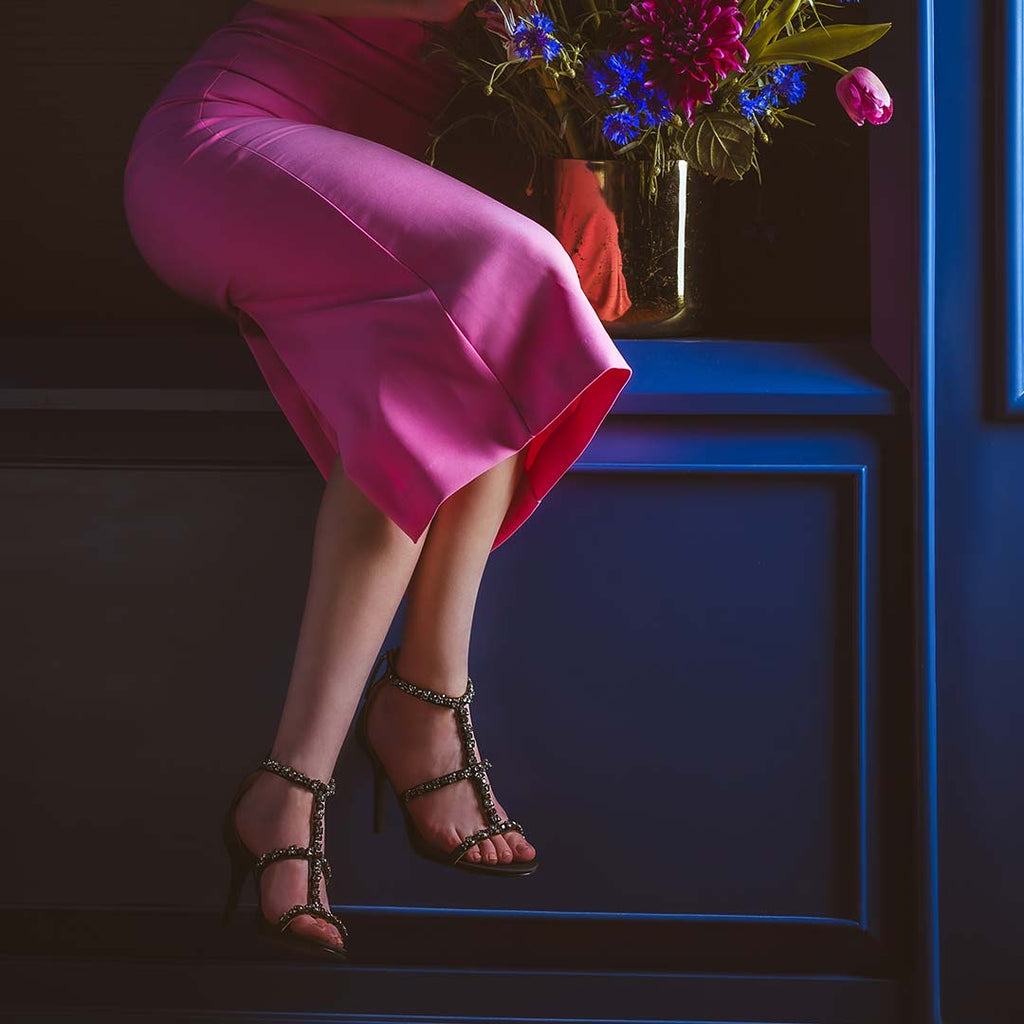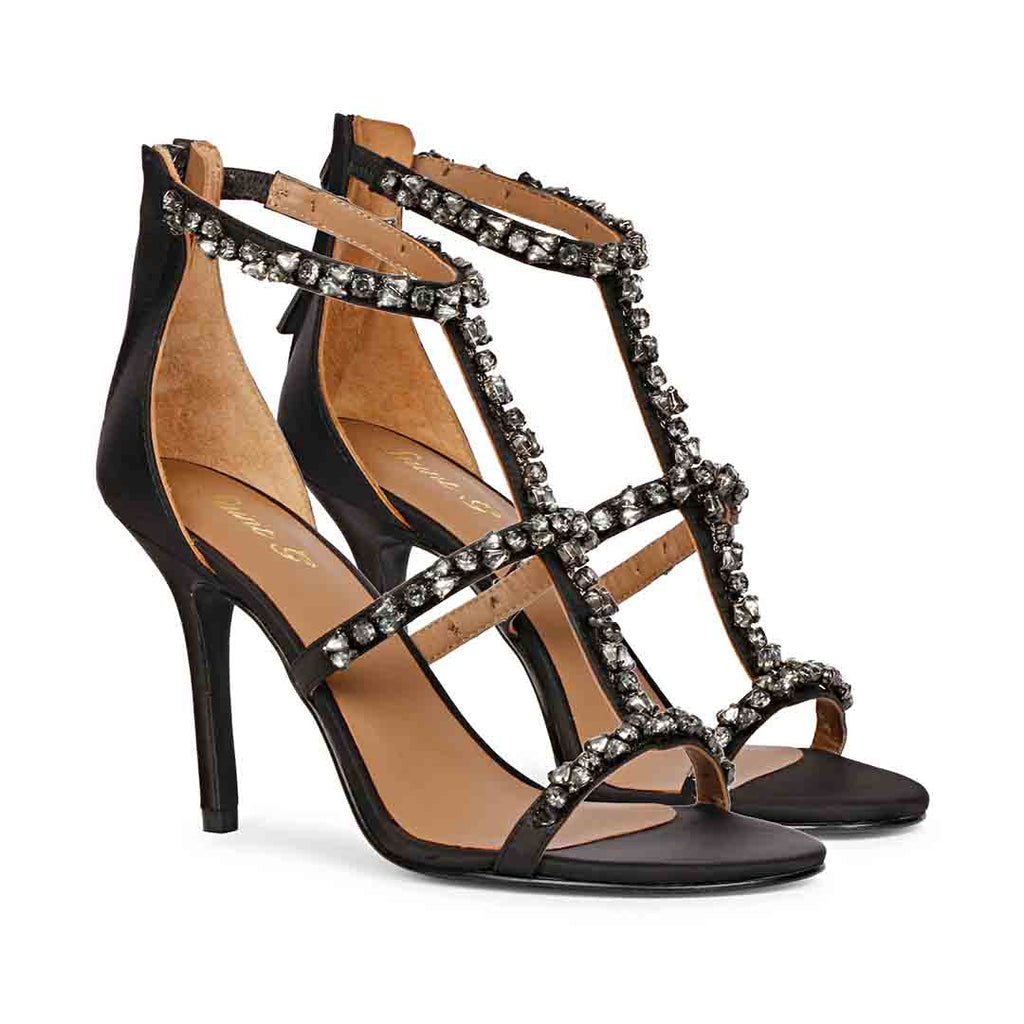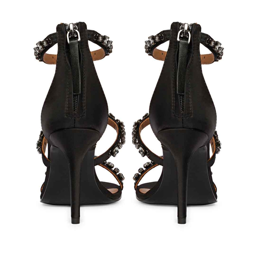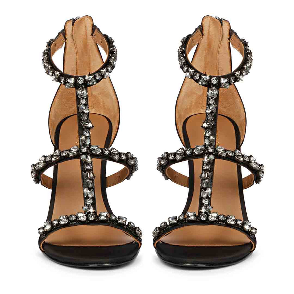 Saint Ella Smoke Stone Embellished Black Leather Heels