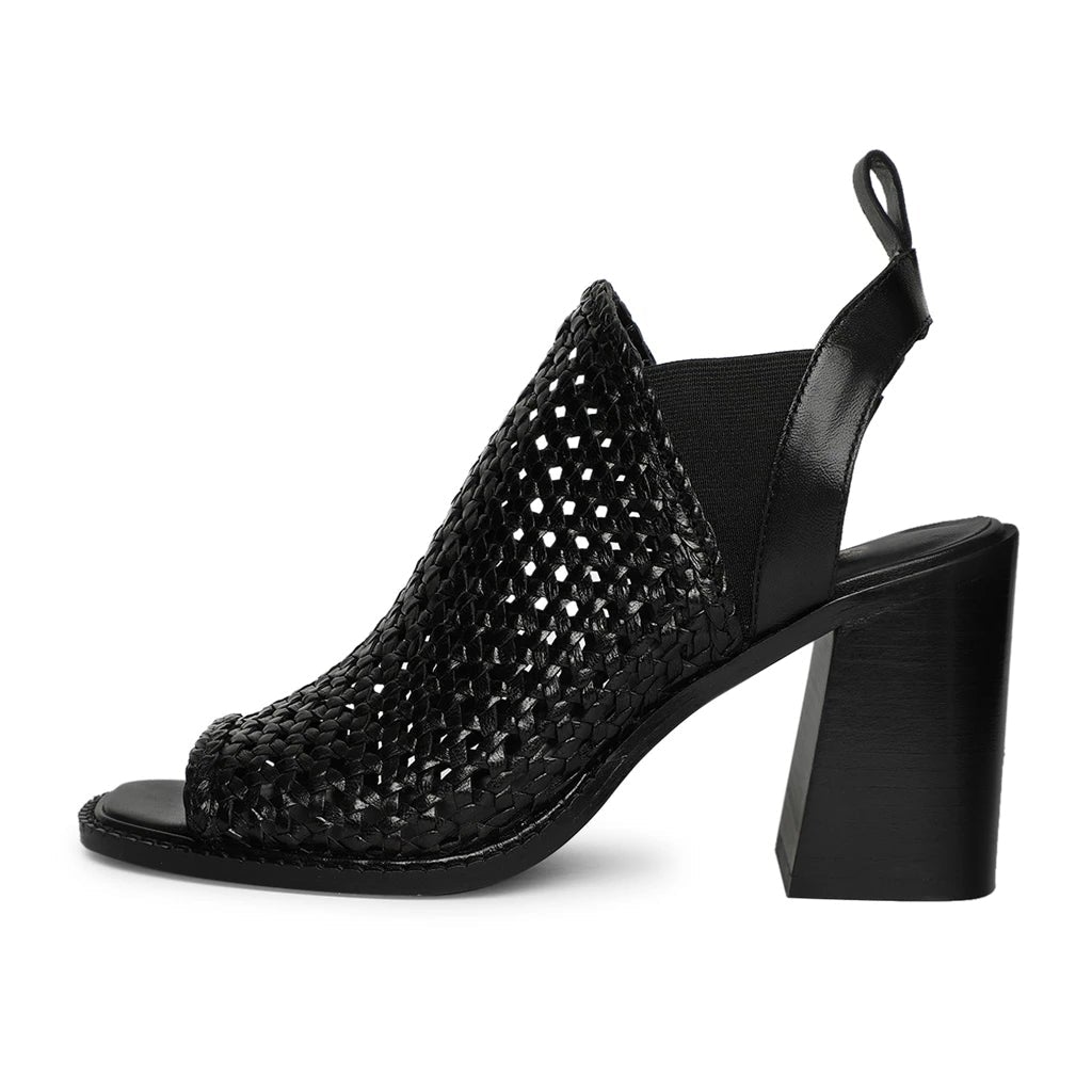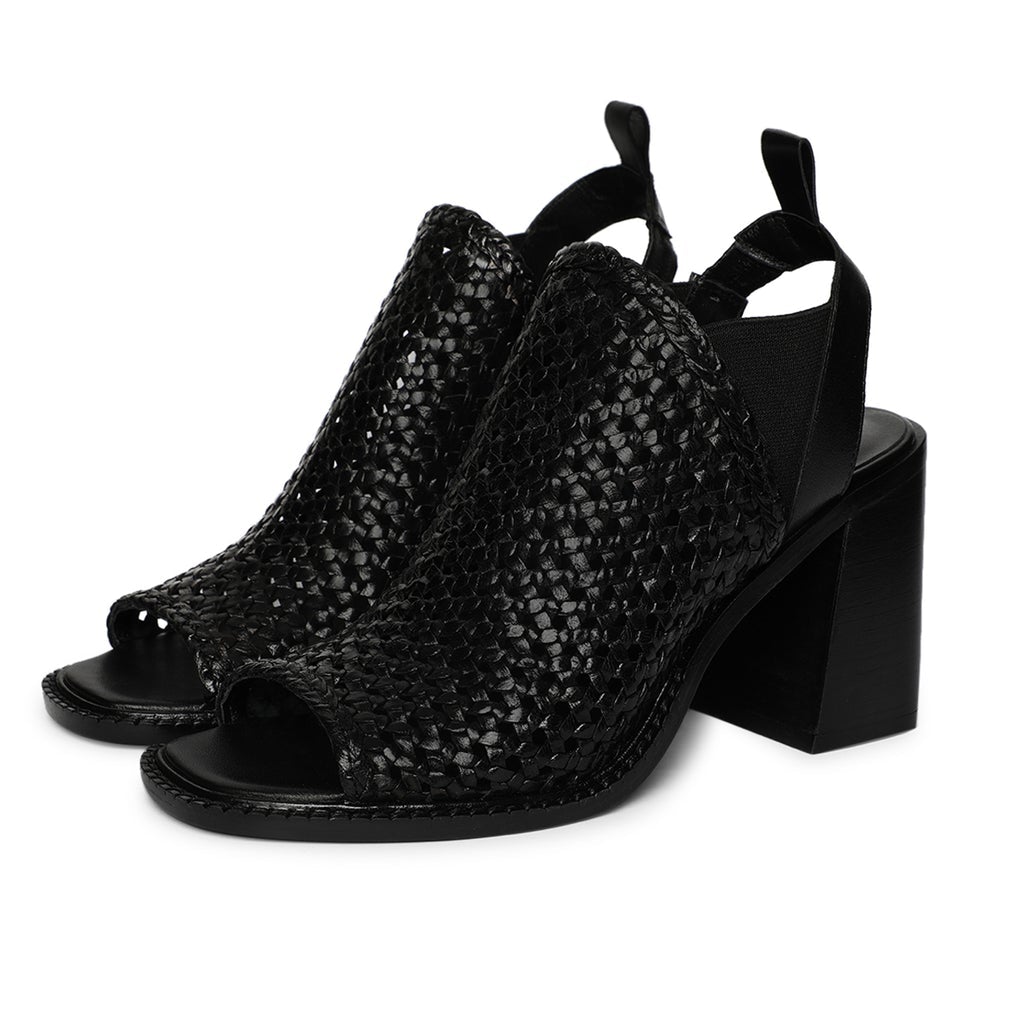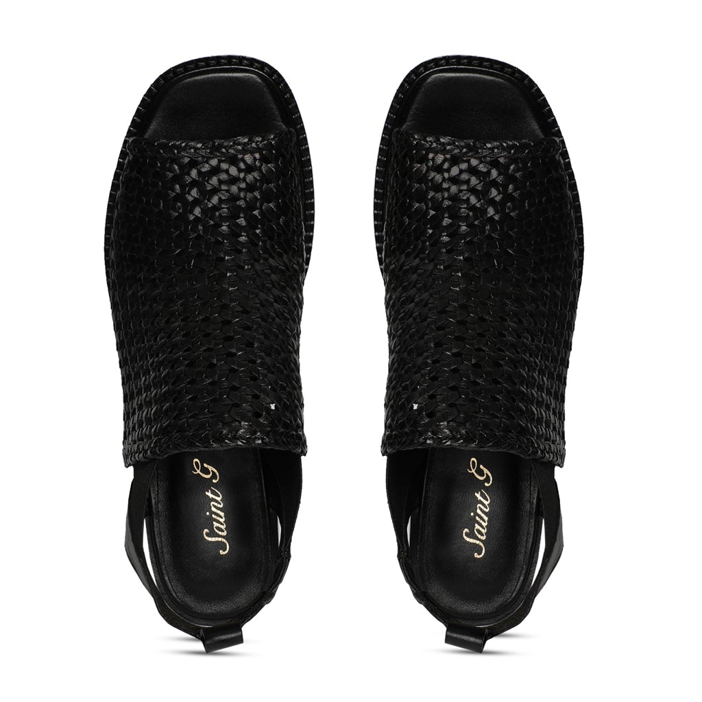 Sparkle and shine in these black woven leather handcrafted heels from SaintG. Ready for a glam style, they will add a great accent to any outfit!