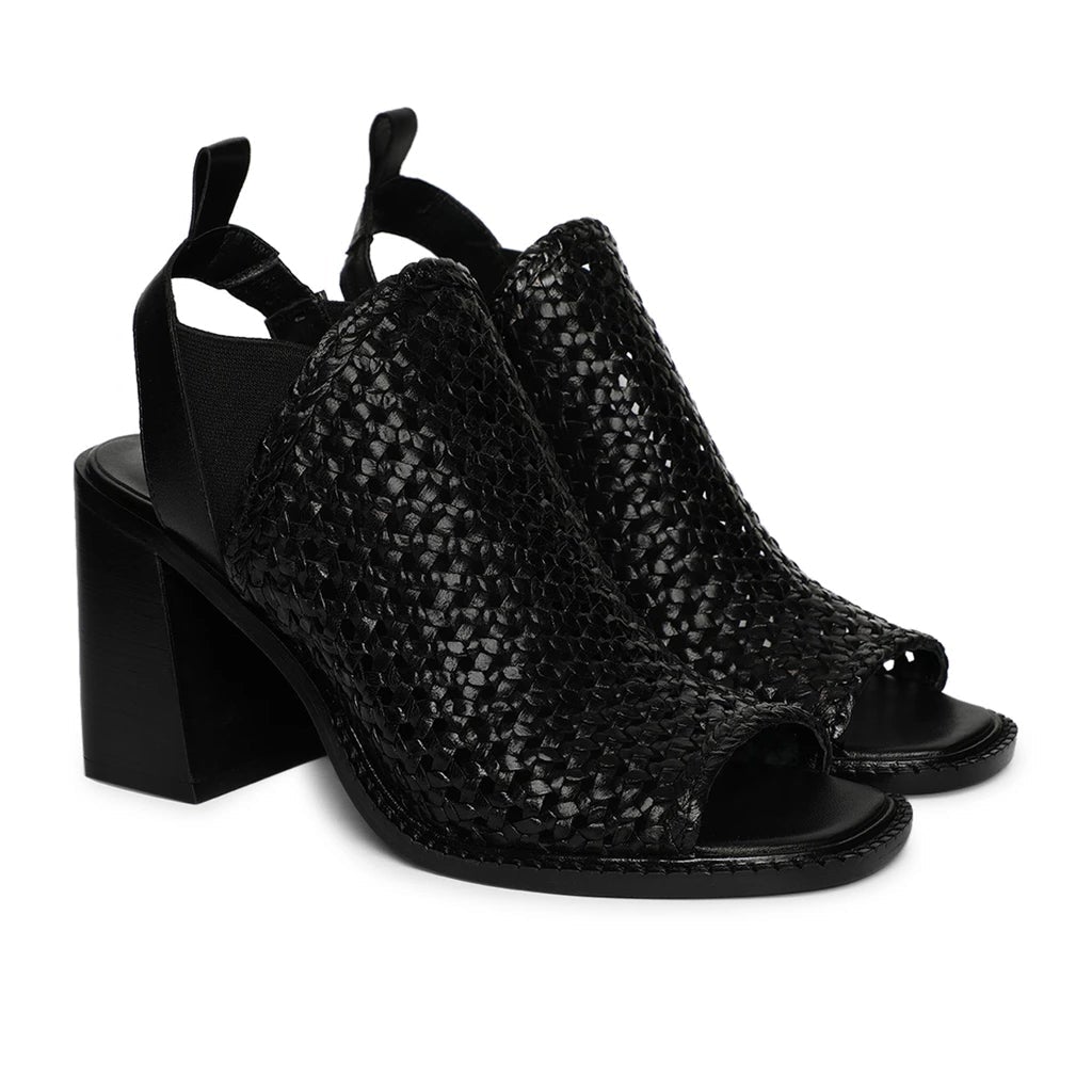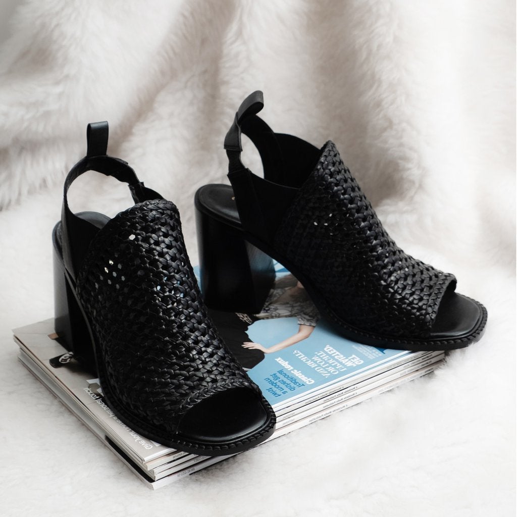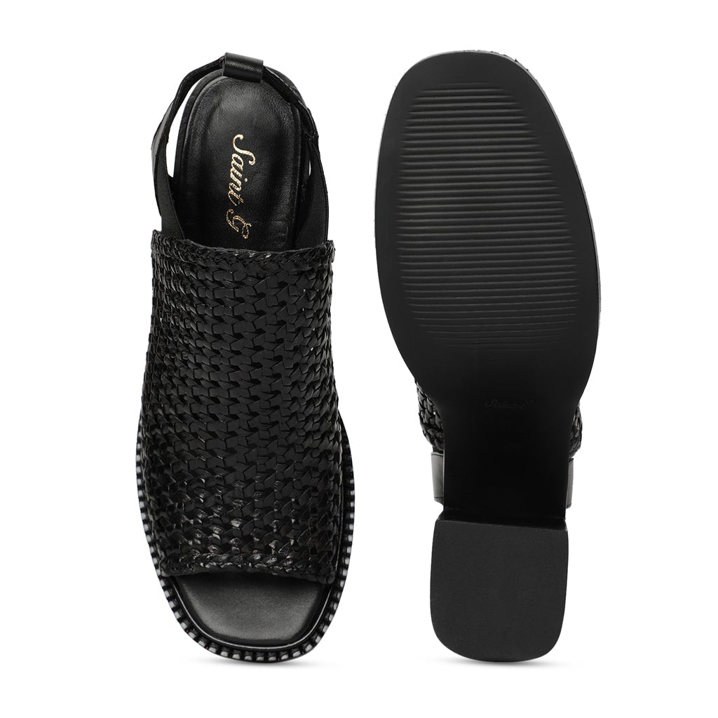 Saint Bella Leather Handcrafted Woven Open Toe Block Heel