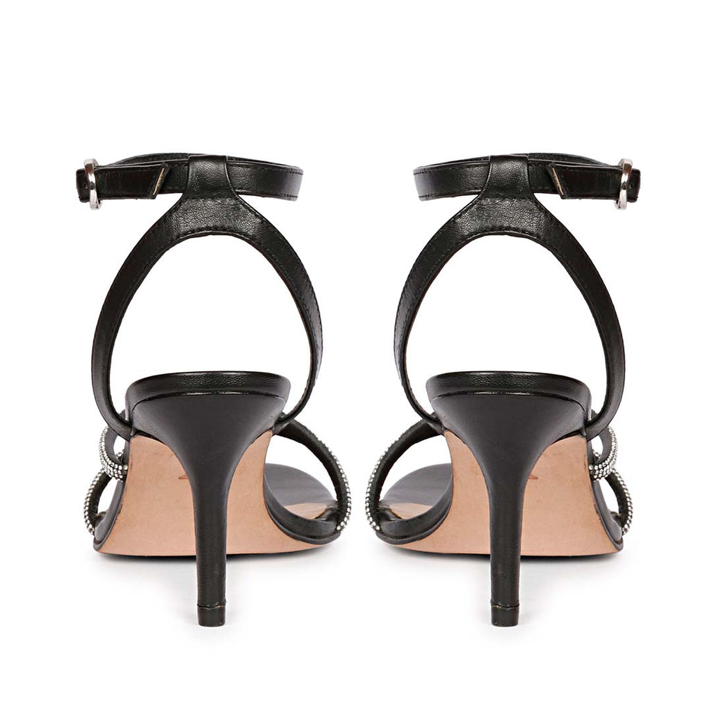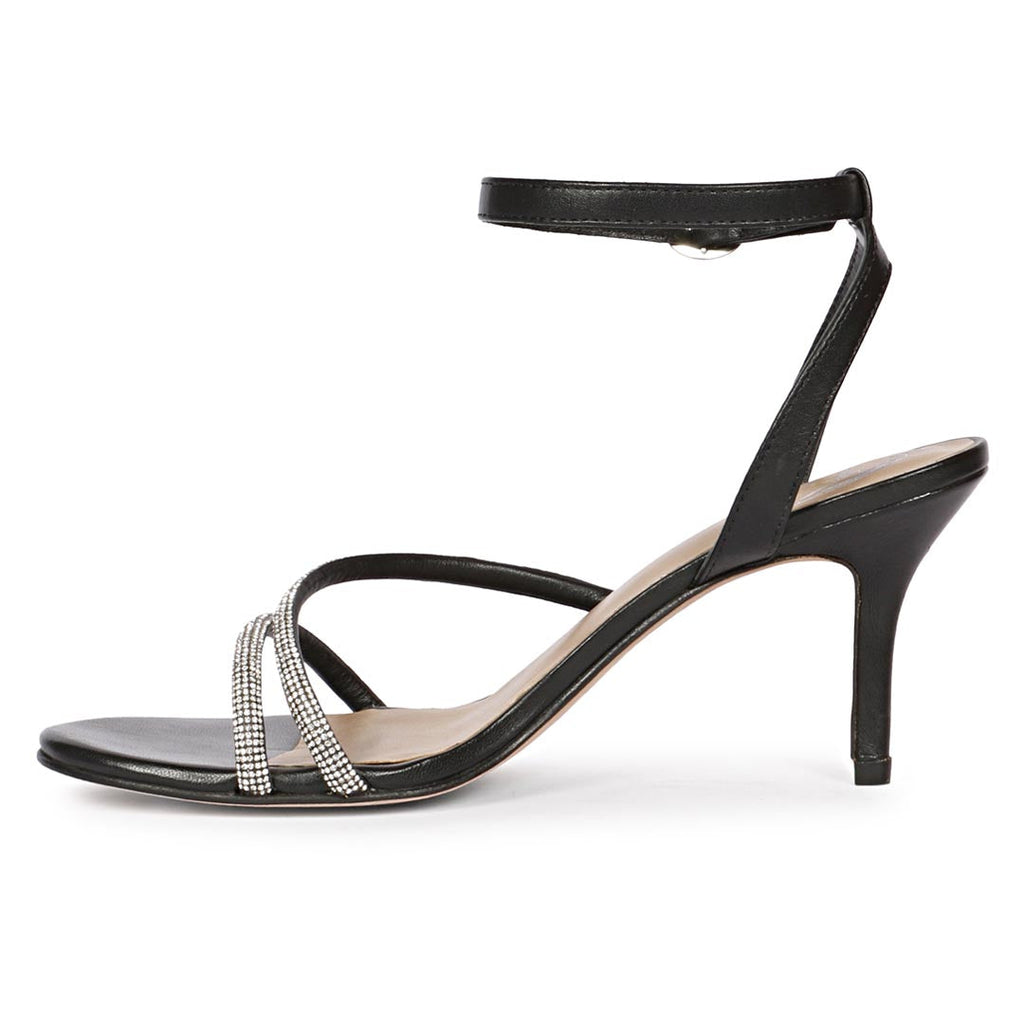 Show off your alluring side with a brand new heel of a stunning stiletto from SaintG. Katie strass stiletto featuring black satin upper, leather lining , buckle-fastening ankle strap, branded leather insole and medium heel.