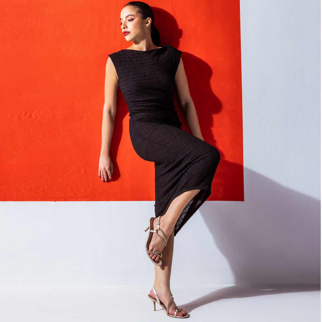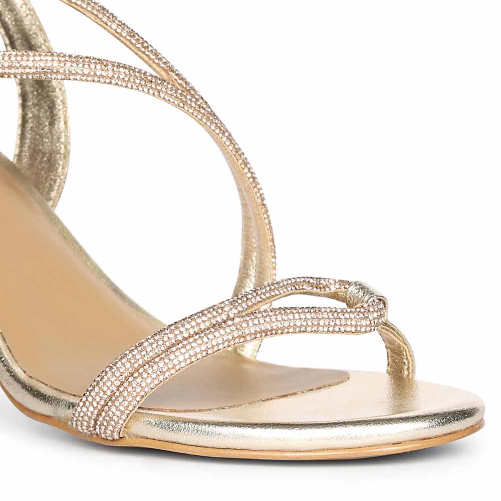 Saint Nessa Crystal Embellished Gold Leather Stilettos