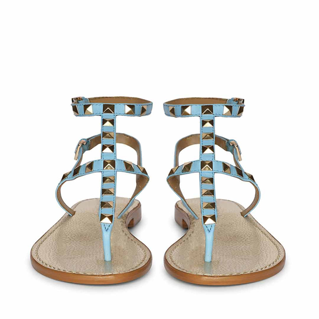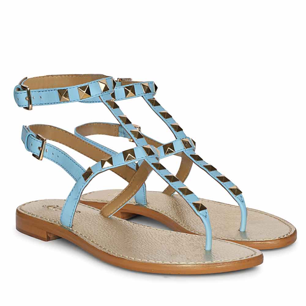 Saint Ornella Sky Blue Leather Metal Studded Sandals