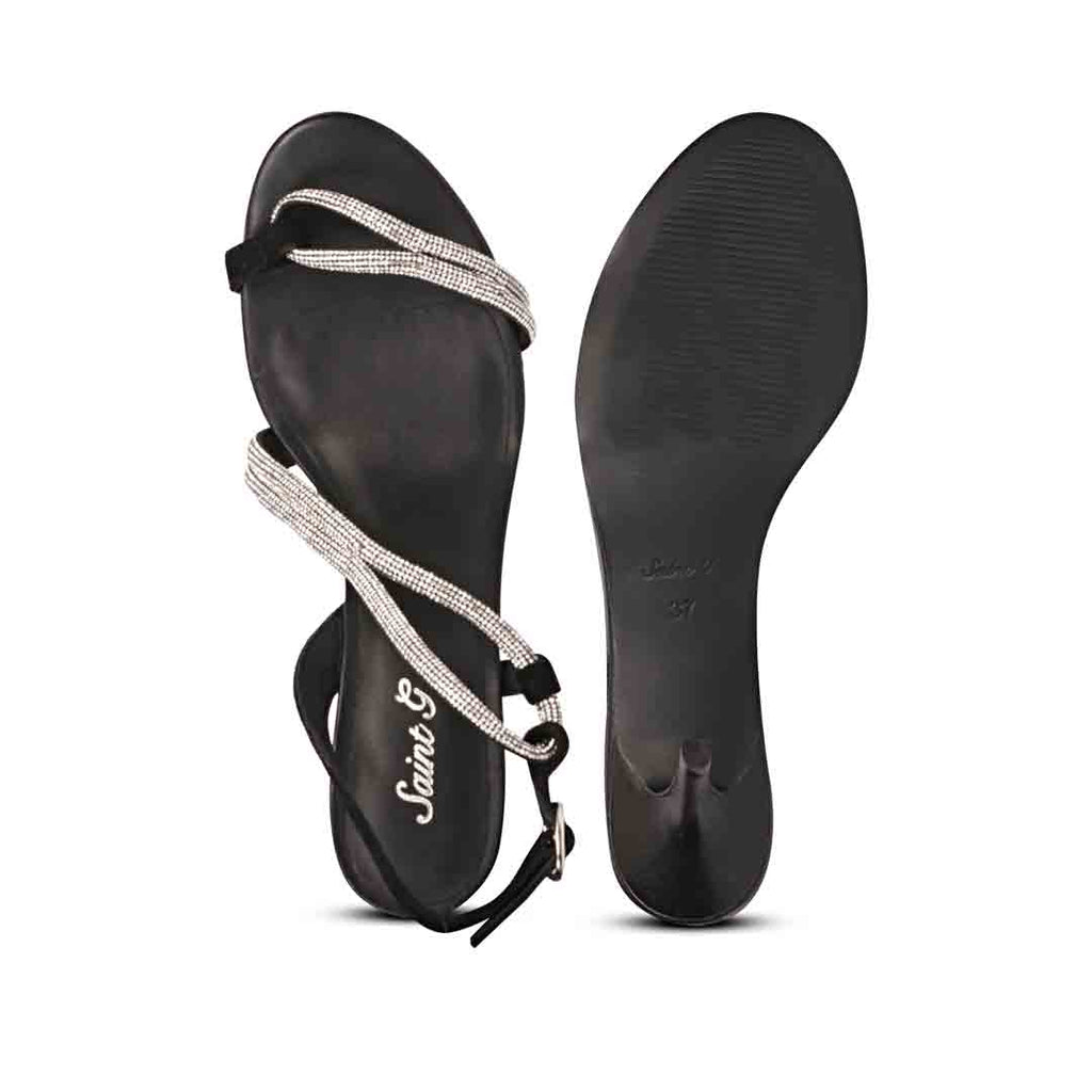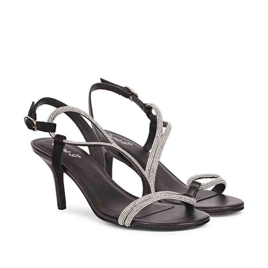 Saint Nessa Crystal Embellished Black Leather Stilettos