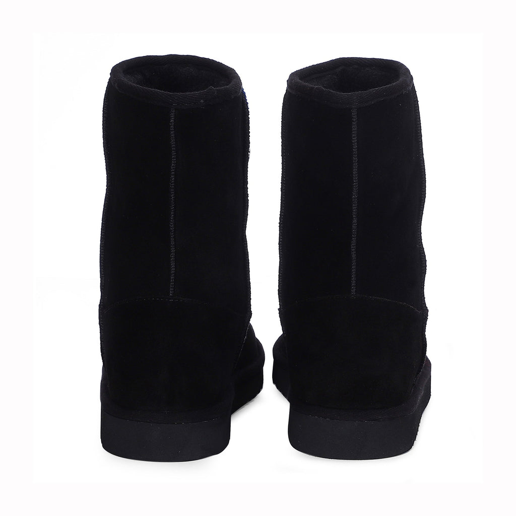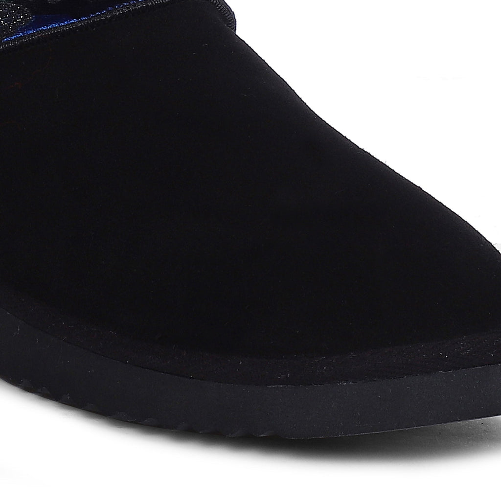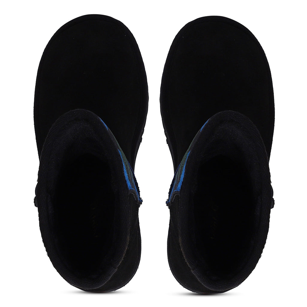 The dazzling, black suede leather and navy camo fabric snug boot will instantly give your winter look a fun party vibe. These boots are designed with fur lining and fur insole to keep your feet warm while you have fun. Enjoy your step with super comfortable & flexible rubber sole.