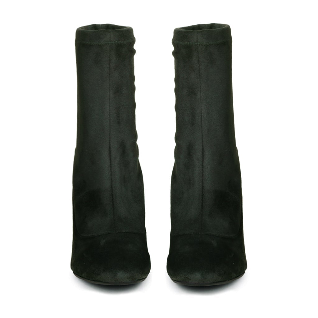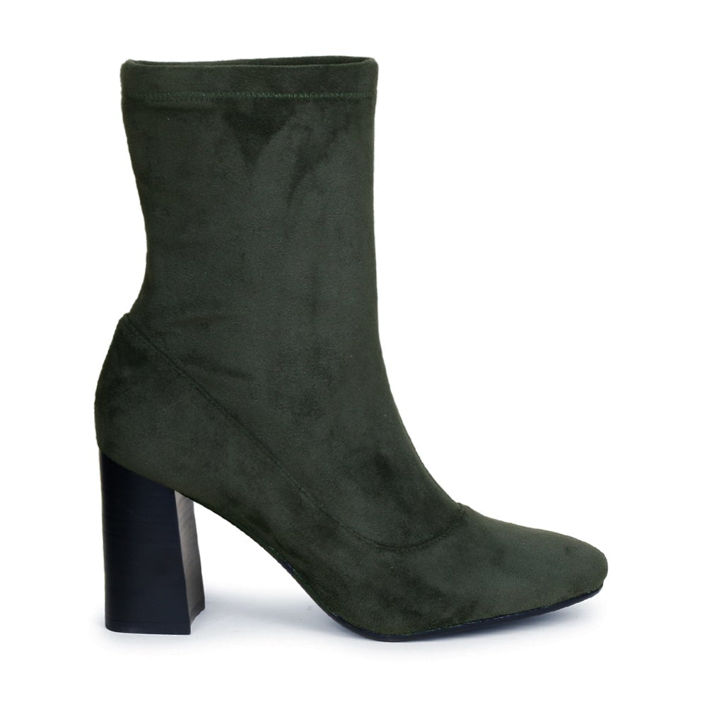 Grow your stylish wardrobe with a pair of grey stretch suede high ankle boot from SaintG. It comes with veneer Leather covered heel and padded leather footbed for natural comfort and breathability. This block heel boot will lend a stylish look to your outfit.