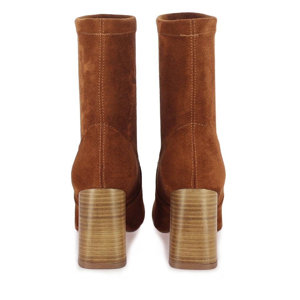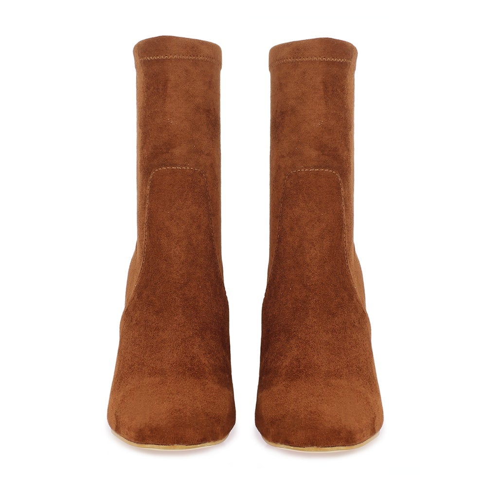 Saint Eleanor Tan Stretch Suede High Ankle Boots