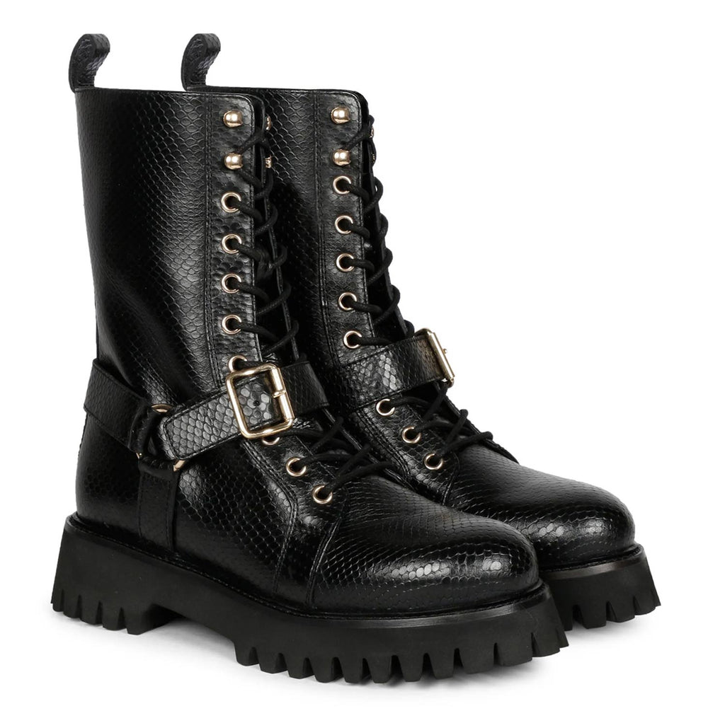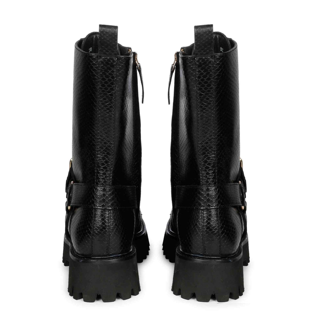 Saint Cyrilo Black Snake Print Leather High Ankle Boots