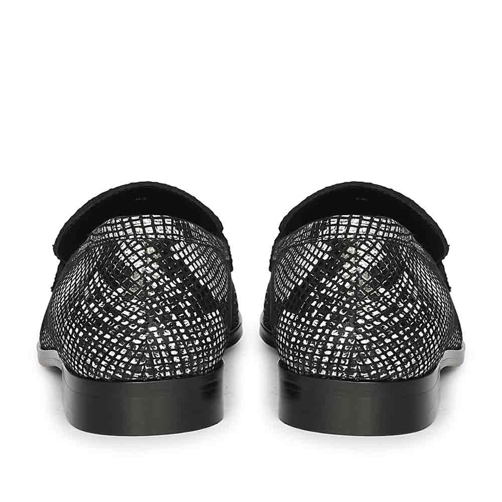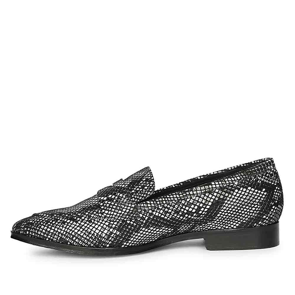 Saint Ellis White and Black Snake Print Leather Loafers.